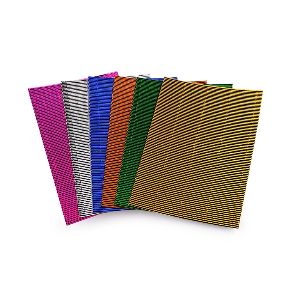 Sada barevných metalických papírů z vlnité lepenky nadchne nejen příznivce scrapbookingu. Každému kreativnímu projektu přidá trochu lesku a originality. Papír je dvouvrstvý, dá se snadno řezat, skládat a lepit. Přední strana je vlnitá, metalická, zadní rovná strana je bílá. Využijete jej k výrobě přání, vzpomínkových fotoalb, ozdobných kartiček nebo dekoračních předmětů.