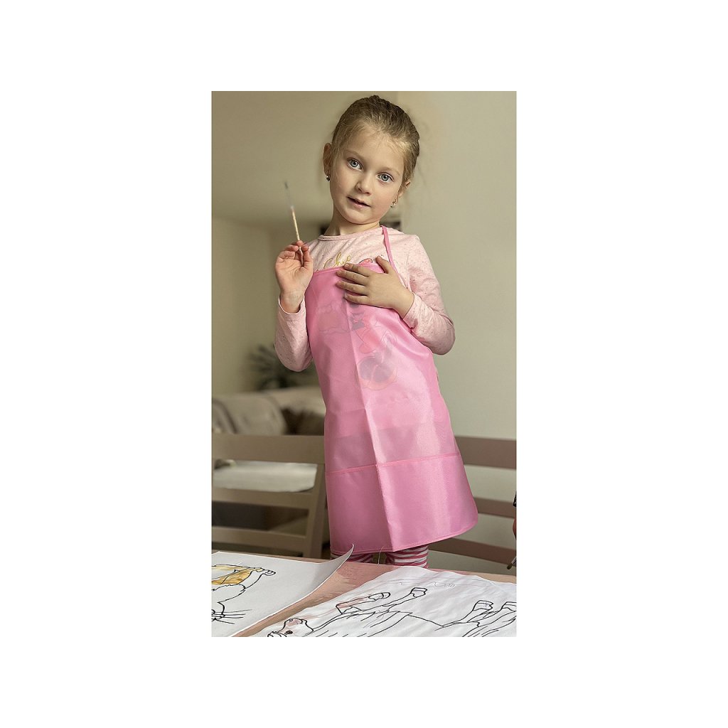 Dětská zástěra do výtvarné výchovy ochrání oblečení před ušpiněním. Má dvě velké kapsy. Děti ji využijí na různé pracovní činnosti a další kroužky. Zástěru mohou použít i na vaření.
