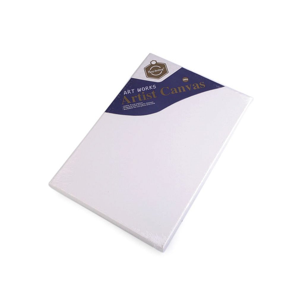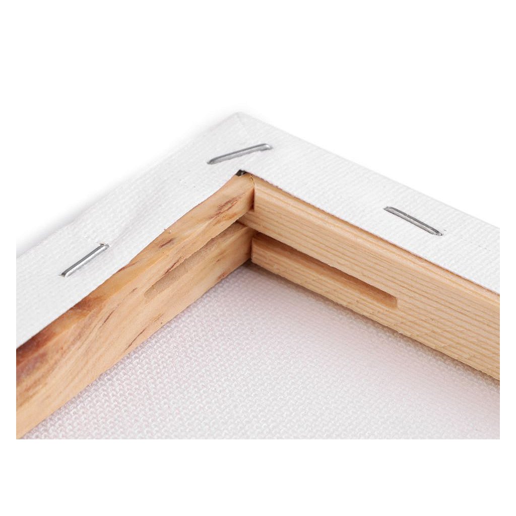 Kvalitní malířské plátno ze 100% bavlny. Je vypnuté na dřevěném blind rámu. Na zadní straně je upevněné svorkami. Plátno je natřené univerzální bílou barvou, která zachovává vzhled plátna. Je vhodné na malování akrylovými a olejovými barvami. Pevné natažení přes hrany rámu umožňuje malovat i na boční hrany plátna, hotový obraz již není nutné dodatečně rámovat.