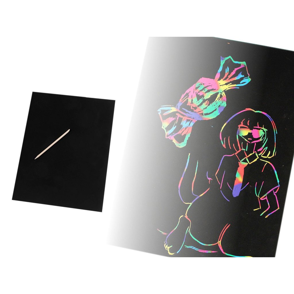 Sada prázdných duhových škrabacích papírů nadchne děti i dospělé kreativce. Každý z těchto 4 matných černých papírů skrývá pod povrchem nádhernou paletu duhových barev, která se odhalí po seškrábnutí svrchní vrstvy. Sada obsahuje také praktické dřevěné škrabátko, které umožňuje snadné a přesné vytváření obrazců, linií nebo detailních motivů. Škrabací papíry můžete využít k rozvoji kreativity a jemné motoriky. Jsou ideální pro tvořivé chvíle s dětmi, výrobu vlastních dekorací, přáníček nebo originálních dárků pro vaše blízké.