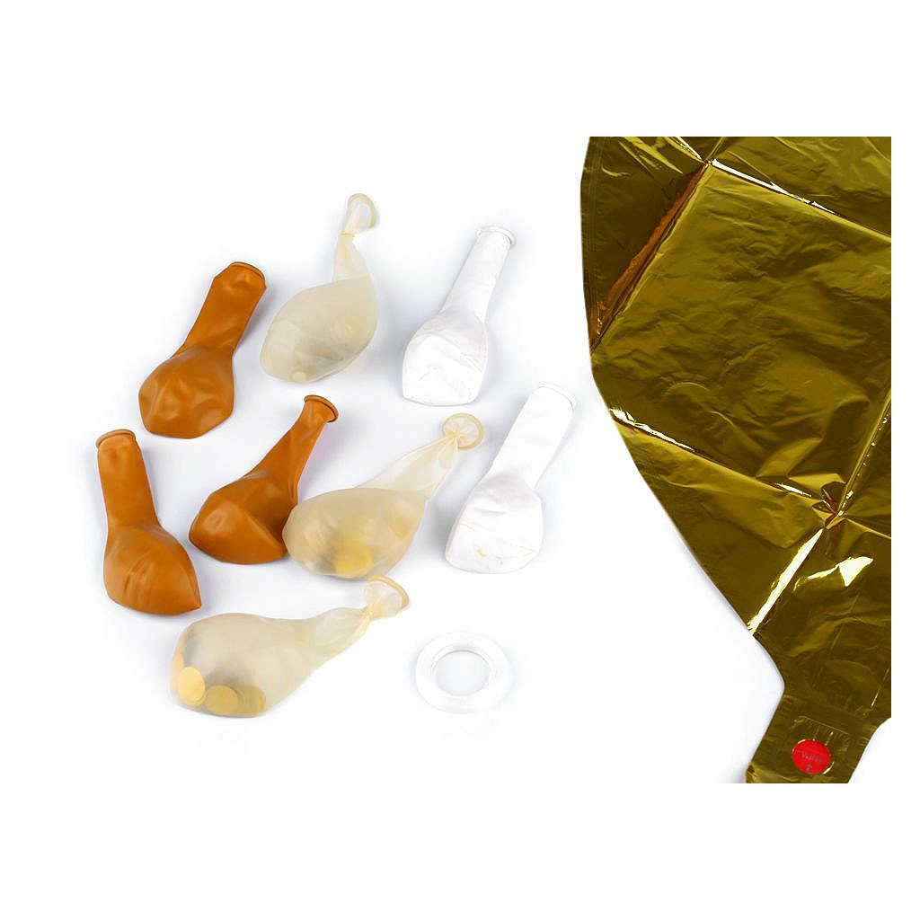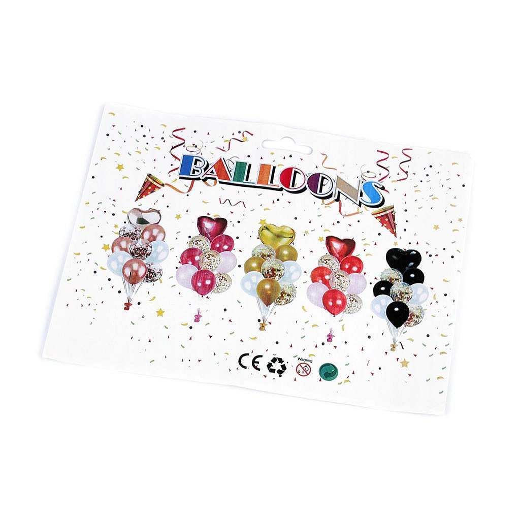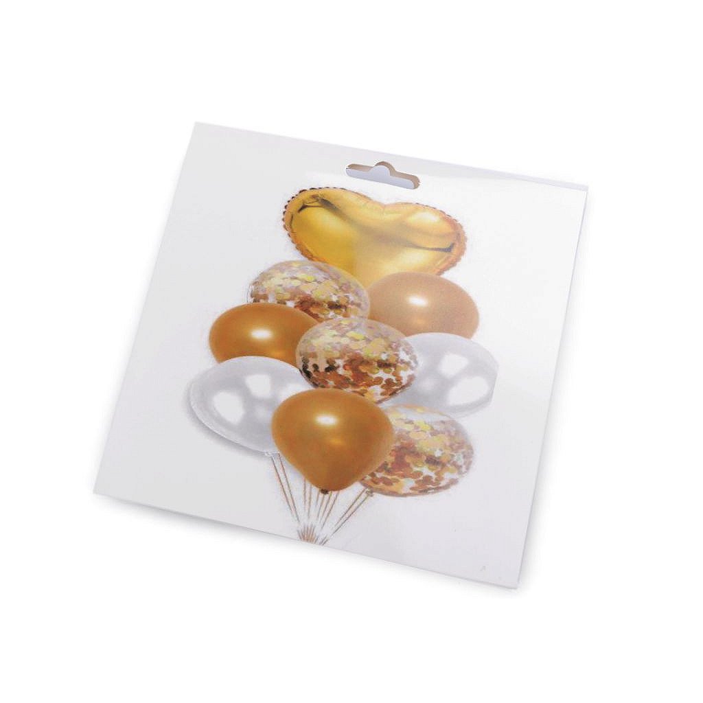 Sada obsahuje celkem 9 balónků - 5 balónků ve dvou různých barvách s perleťovým leskem, 3 balónky s konfetami uvnitř a 1 velký fóliový balónek ve tvaru srdce (40 x 40 cm). V balení je i stuha v kotoučku.