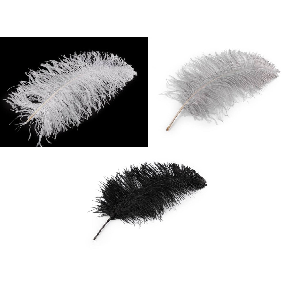 Ozdobné pštrosí peří má velký podíl jemného chmýří, díky tomu působí luxusně. Využijete jej k dekoračním účelům. Vzhledem k tomu, že to je přírodní materiál, může mít každé pero jiné zakřivení a jiný tvar. Šířka peří je cca 25 cm.
