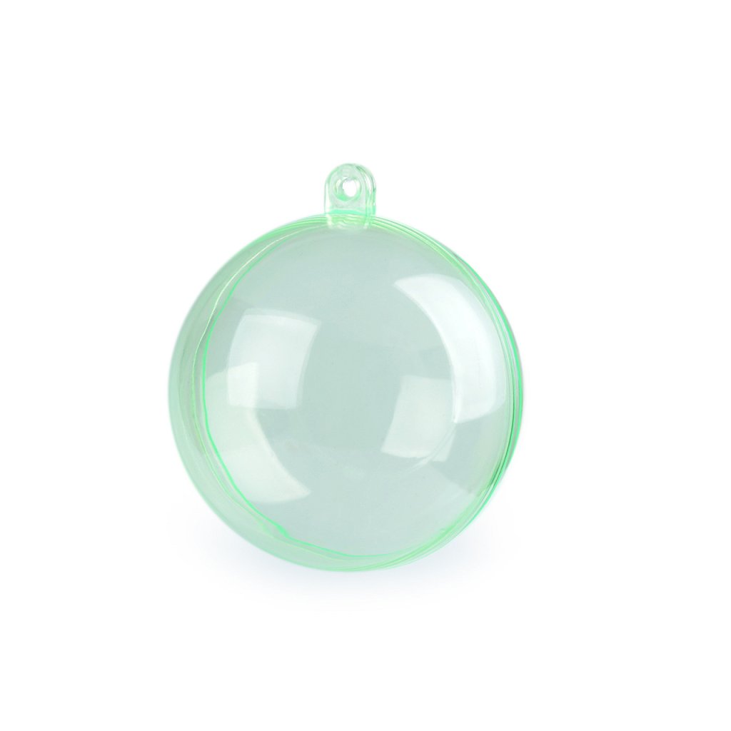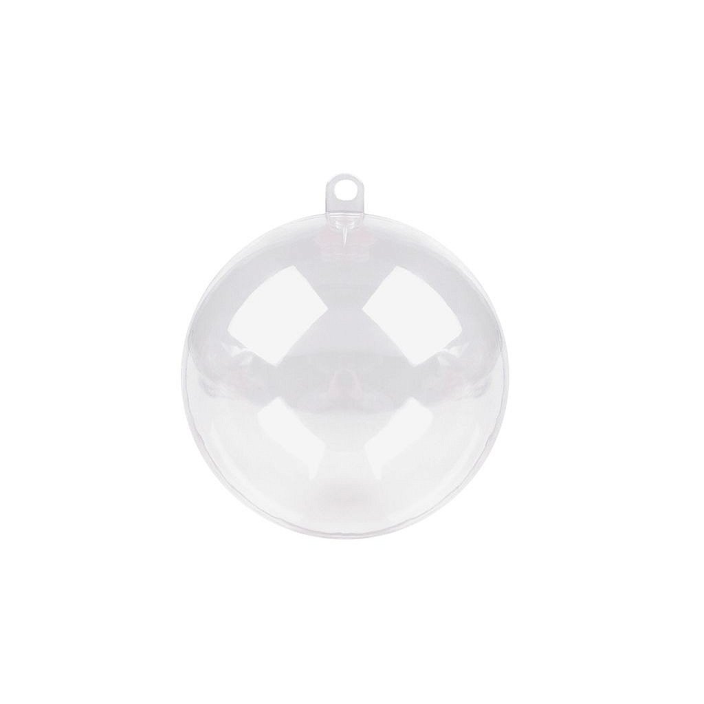 Průhledná plastová koule se skládá ze dvou částí, které lze spojit a pomocí očka zavěsit jako dekoraci. Jedná se o polotovar, který je určen k dozdobení např. jej můžete obháčkovat, dekorovat metodou quilling, ubrouskovou technikou, dozdobit glitry atd. Ve fantazii se meze nekladou.Průměr koule je 6 cm. Průměr průvleku na zavěšení je 3 mm.