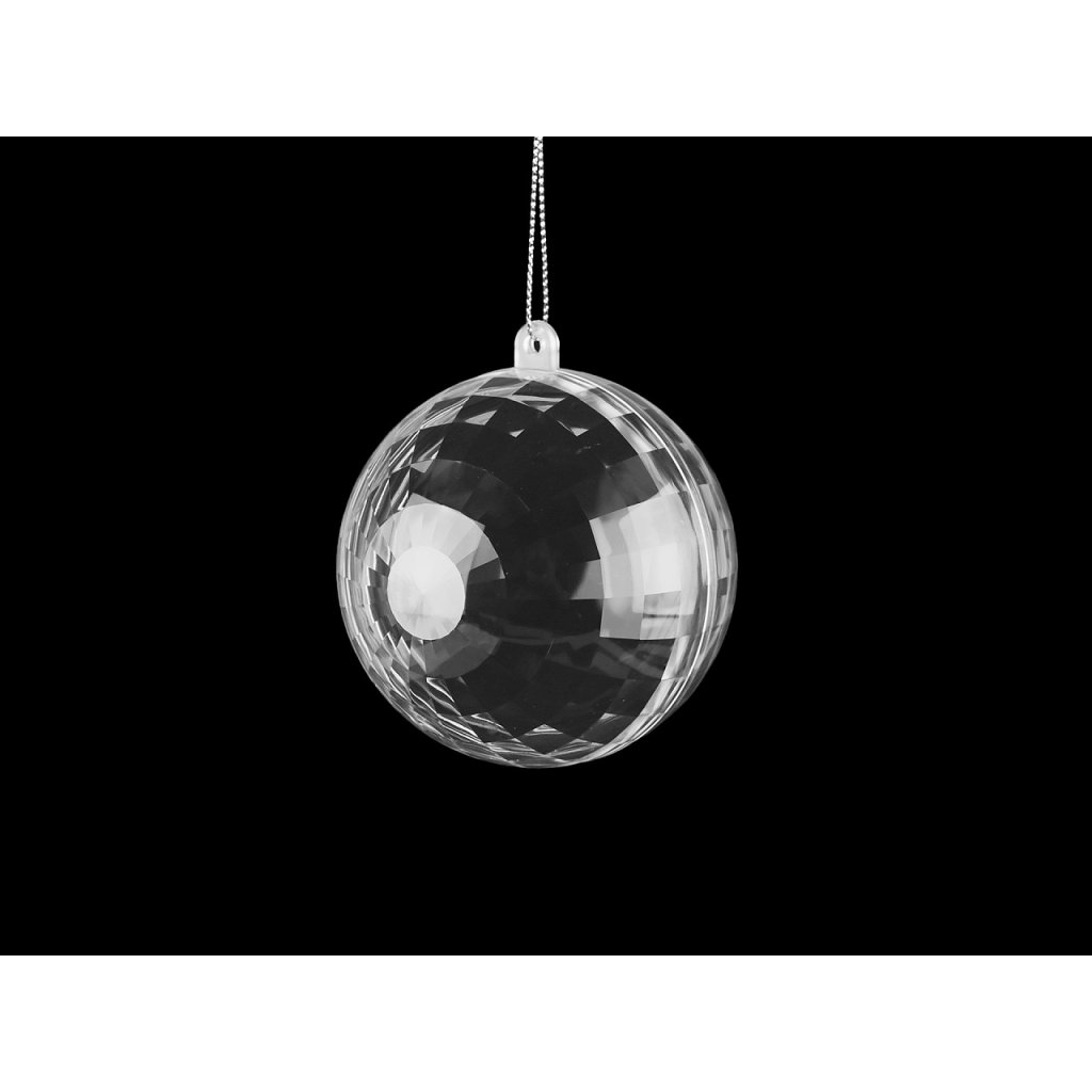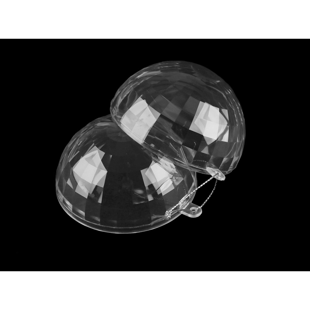 Průhledná plastová koule s lomenými ploškami se skládá ze dvou dílů, které lze spojit. Za lurexovou šňůrku, která je její součástí, ji můžete zavěsit jako dekoraci. Je určena k dalšímu dozdobení např. ji můžete obháčkovat, dekorovat metodou quilling, ubrouskovou technikou, dozdobit glitry atd. Fantazii se meze nekladou.
