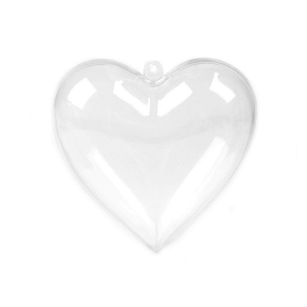 Průhledné plastové srdce se skládá ze dvou dílů, které lze spojit a pomocí očka zavěsit jako dekoraci. Má široké využití. Lze jej použít jako dárkovou krabičku k narození dítěte nebo ji můžete použít k dalšímu dozdobení např. obháčkovat či dekorovat metodou quilling.