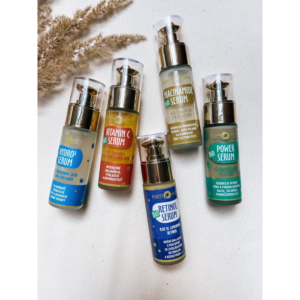 100% přírodní noční sérum je vhodné pro všechny typy pletí, nejvíce ale jeho účinky ocení zralá a věkem unavená pokožka. Tenhle elixír mládí tvoří hlavně lipozomální retinol spolu s koenzymem Q10, které redukují jemné linky a vrásky a podporují produkci kolagenu. O postupné uvolňování retinolu do hlubších vrstev pokožky se starají liposomy, které jej ukrývají ve své struktuře. Hedvábně jemné sérum obsahuje unikátní kombinaci extraktů z mrkve, pivních kvasinek, přesličky a chia semínek, která pleť zásobuje potřebnými živinami a minerály, podporuje prokrvení a zpomaluje proces stárnutí. Díky účinným, ale šetrným exfoliantům bude pleť opět hladká, svěží a mladistvá. Sérum se pyšní certifikací AIAB a je vegan friendly.. Bio Retinol sérum není vhodné pro těhotné ženy.. Opravdu retinol vyhlazuje vrásky? Vyzkoušeli jsme pleťové sérum od Purity Vision na vlastní kůži. Jaké jsou naše dojmy po měsíčním testování? Jukněte do upřímné recenze. :)