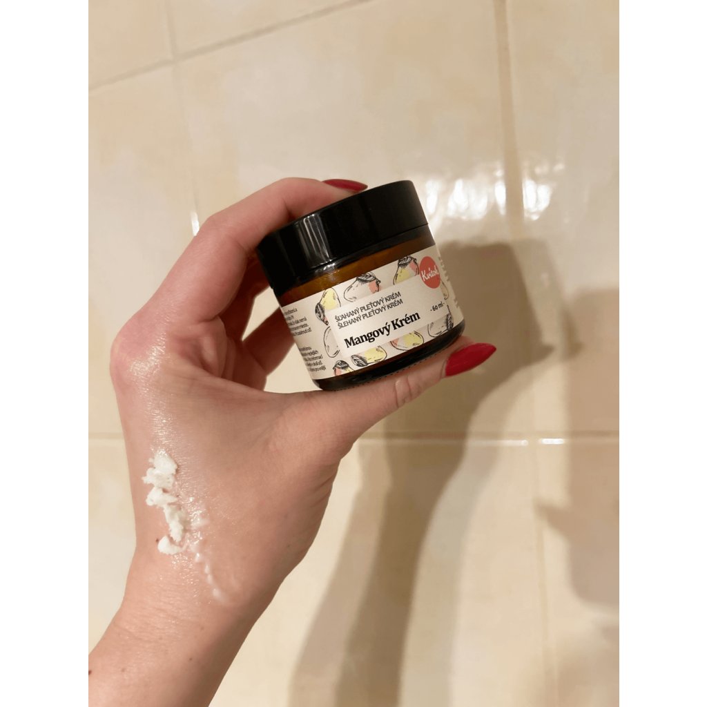 Našlehaný pleťový krém s mangovým máslem by měli mít v merku především majitelé citlivé a suché pleti. Receptura s Cupuaco máslem a oleji z meruňkových jader a jojoby zklidní svědění, zmírní zarudnutí i nepříjemné pálení a pnutí v pokožce. Kůži zároveň chrání před vnějšími nepříznivými vlivy a posílí její přirozenou ochranu. Ač jde o krém určený na obličej, s radostí opečuje i zbytek těla, obzvlášť pokud ho sužuje vyprahlá pokožka. Super je i do chladných a mrazivých dní jako náhrada denního krému. A navíc je to držák, stačí ho jen maličko, takže si jeho rozmazlování užijete dlouho.