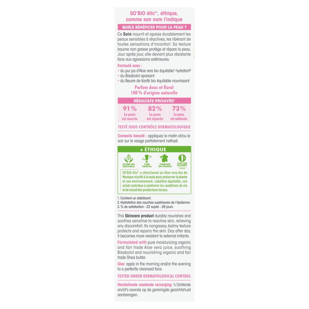 SO’BiO étic Péče výživná reparační s Aloe vera pro citlivou pleť BIO (50 ml) - hydratuje a vyživuje pleť