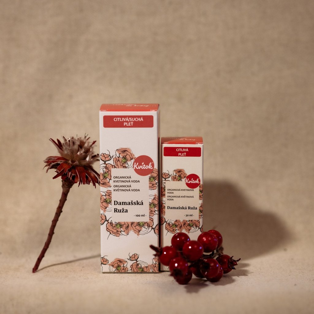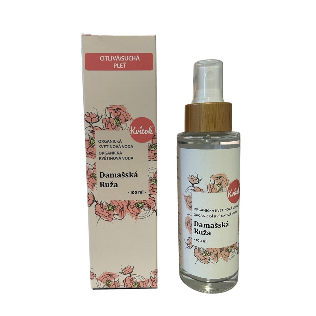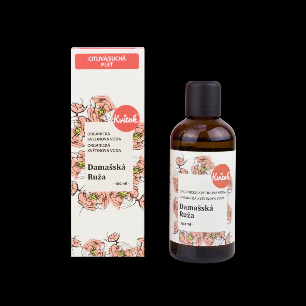 Damašská růže patří mezi nejcennější rostliny na světě. Ne nadarmo byla, jakožto symbol lásky a krásy, zasvěcena bohyni Afroditě. Kvitok nyní přináší 100% čistou květovou vodu z růžových lístků této nádherné květiny. Pokud vás trápí akné, kruhy pod očima, otoky nebo citlivá pokožka, pak její staletí ověřené účinky můžete vyzkoušet i vy.. Díky tomu, že je tato růžová voda v BIO kvalitě, můžete ji bez obav používat i jako podpůrný prostředek při léčbě některých onemocnění, při výrobě parfémů nebo také na vaření.