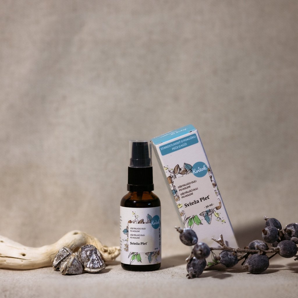 Kvitok Uklidňující olej po holení Svěží pleť (30 ml) - se svěží bylinkovou vůní