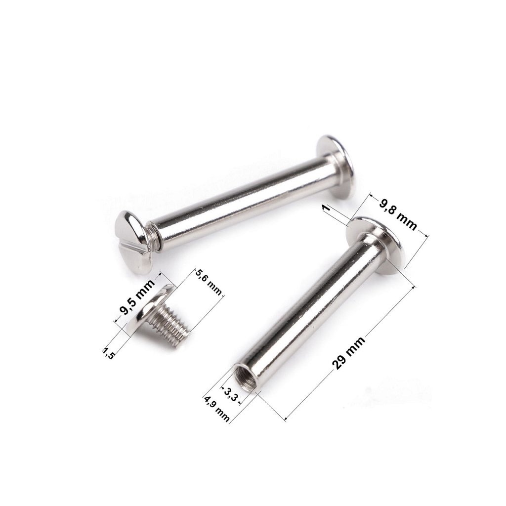 Knihařský šroub je určený k upevnění knižní vazby, výrobě alb, zápisníků, diářů, sestavení vzorníků apod.