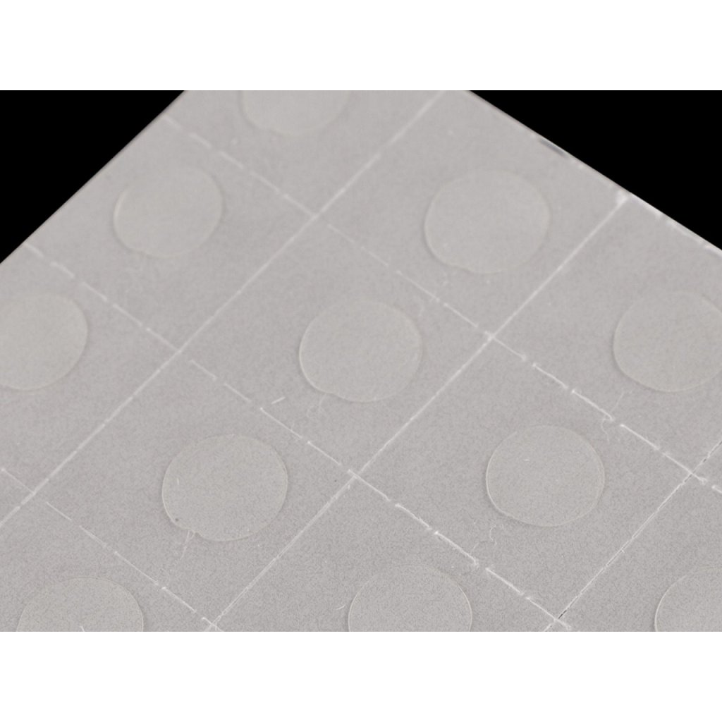Samolepicí transparentní tečky průměru 12 mm jsou vysoce lepivé. Na podkladovém papíru jsou jednotlivě oddělené. Hodí se pro aplikace a vrstvení lehkých materiálů. Jsou použitelné jak pro domácnost, tak najdou využití v reklamě nebo při výrobě dekorací. Velmi oblíbené pro techniku scrapbooking.