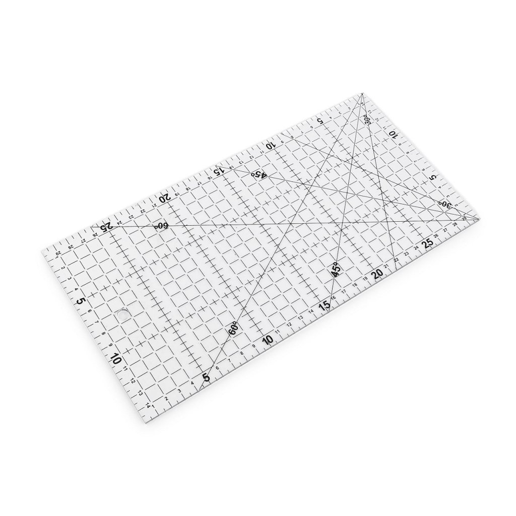 Pevné plastové pravítko oceníte pro jeho univerzálnost. Dá se využít nejen na techniku patchwork, ale i na další ruční práce jako jsou quilting, scrapbooking a šití. Vyznačené jsou hodnoty po půl cm a úhly 30°, 45° a 60°.