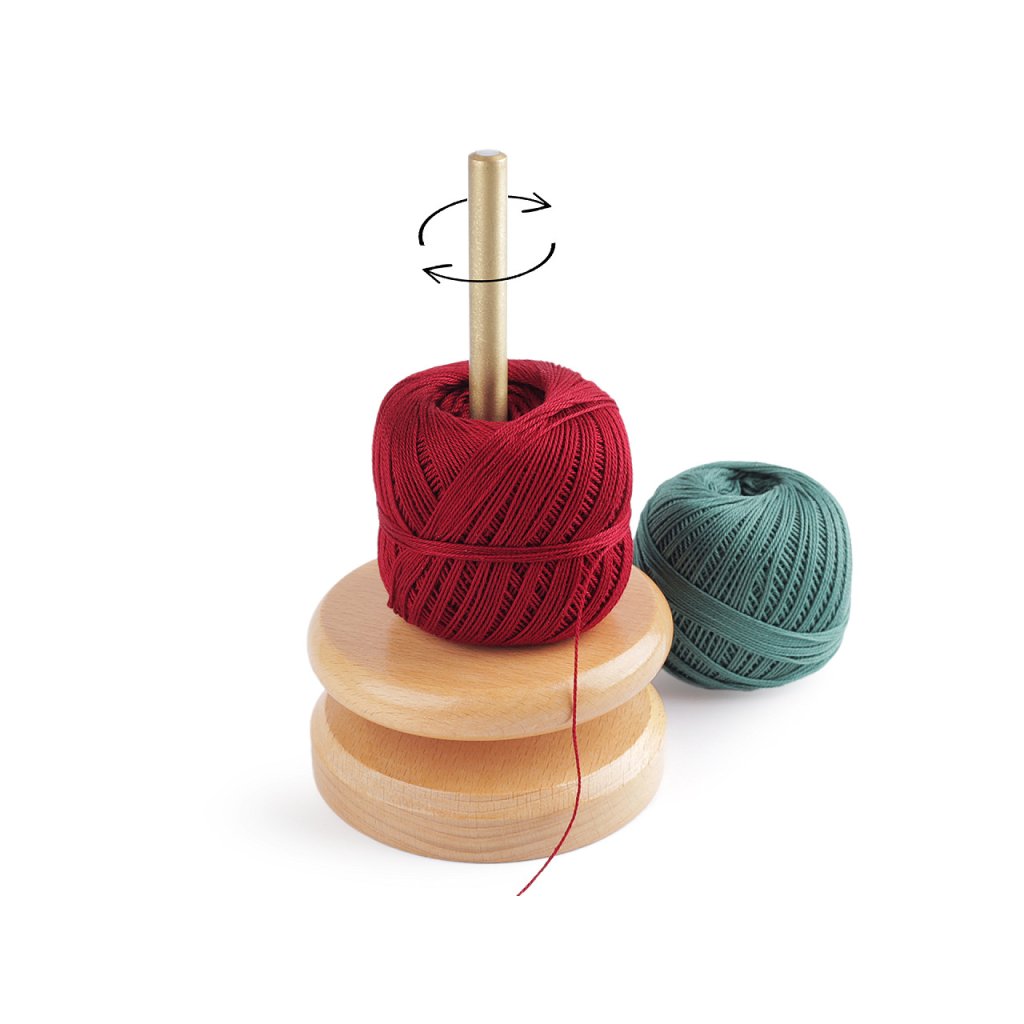 Dřevěný odvíječ slouží k plynulému odvíjení příze při pletení a háčkování, bez zamotávání. Oceníte ho při pletení z vnější části klubka. Má dobrou stabilitu.