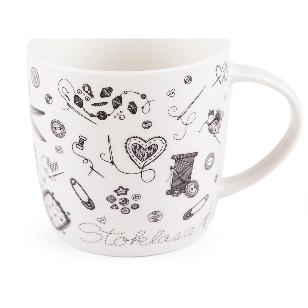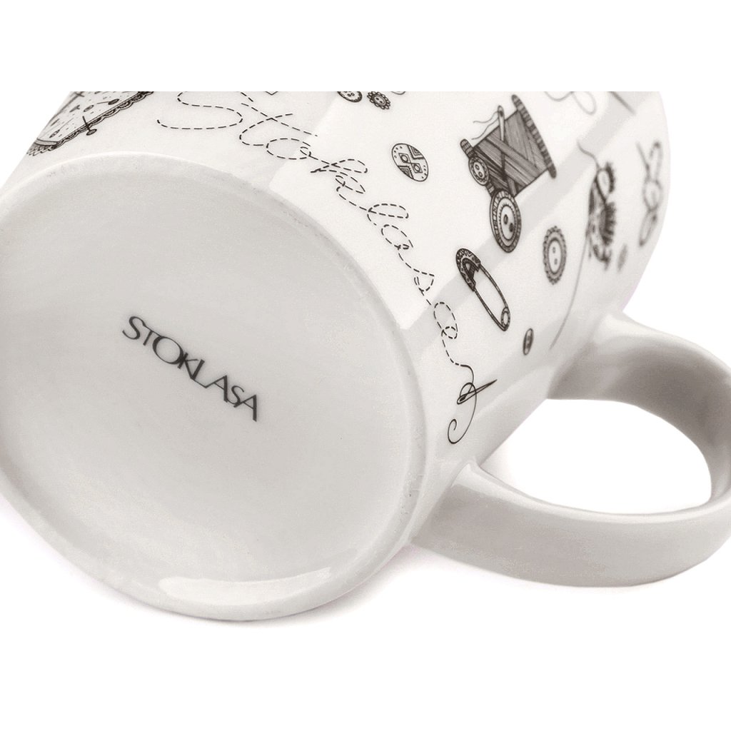 S porcelánovým hrnkem Stoklasa bude každodenní pití kávy či čaje skvělým zážitkem. Design s kresbou krejčovských potřeb potěší nejen profesionální švadlenky. Hrnek je vhodný do myčky. Na spodní straně je logo "Stoklasa".