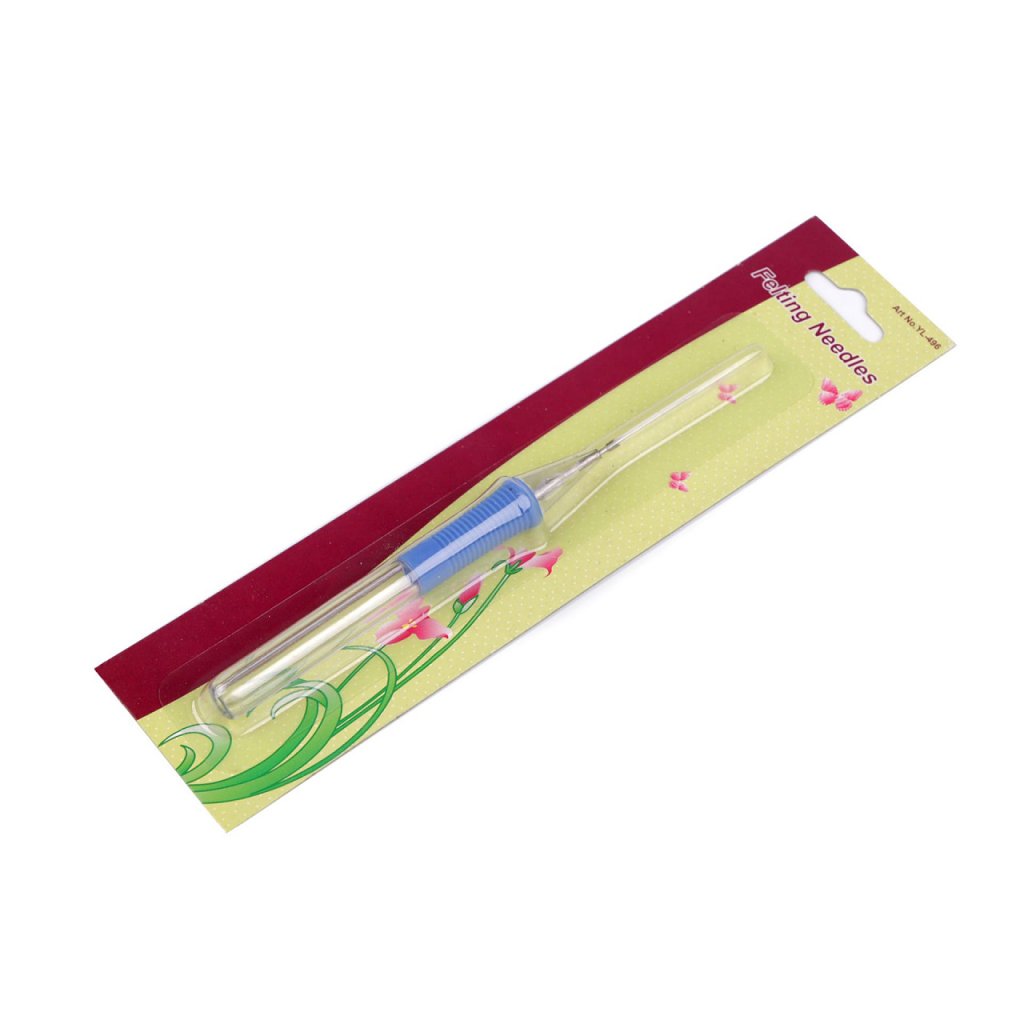 Bez jehly na plstění se neobejdete, pokud plstíte technikou vypichování. Má praktickou plastovou rukojeť, která se pohodlně drží v ruce, tudíž odpadá náročné držení jehly v prstech. Jehla se v rukojeti nedá vyměnit, je pevná.