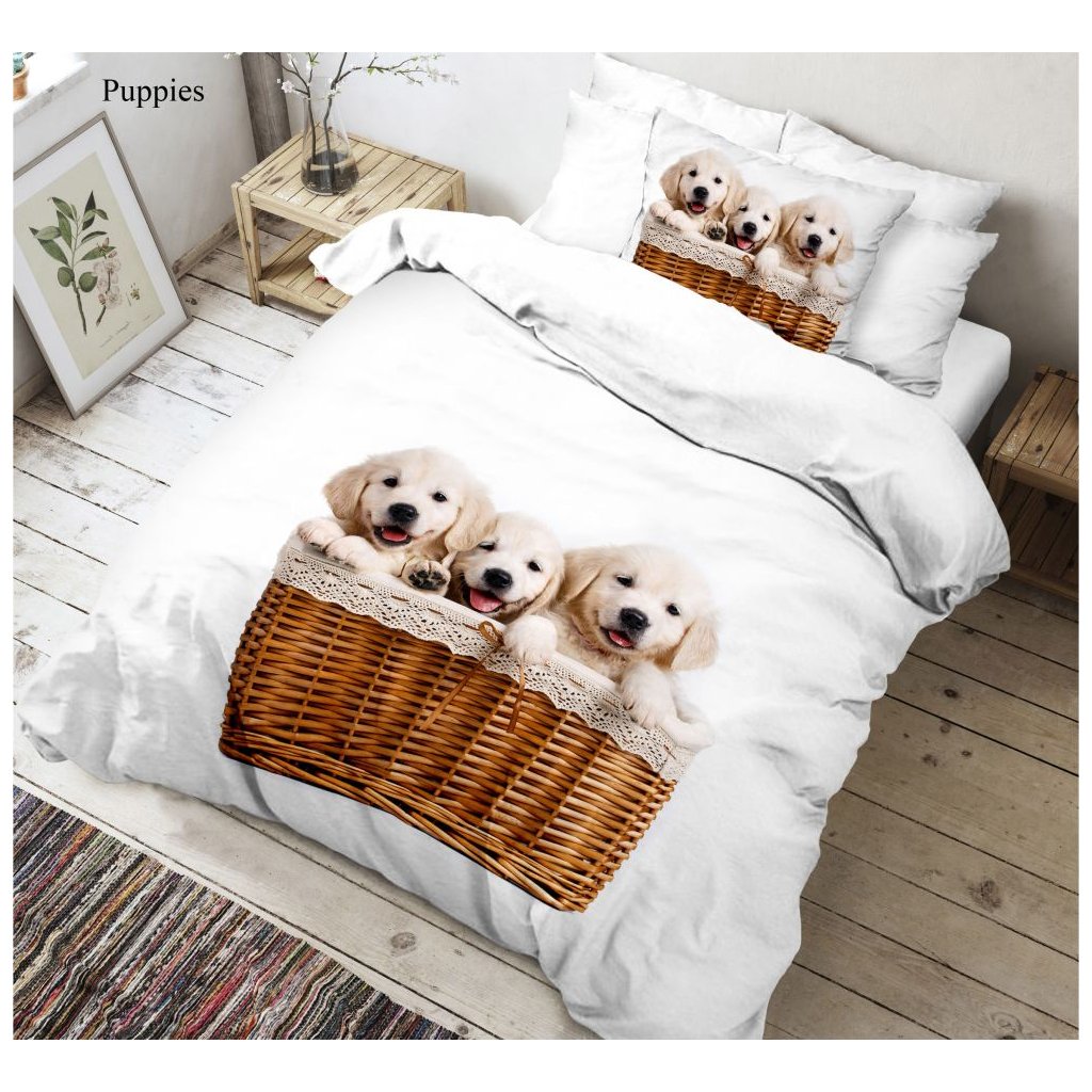 3D povlečení je vyrobeno z jemné bavlněné tkaniny. Inovací tohoto povlečení je dosaženo použitím digitálního tisku, kde vyniknou lépe barvy a samotné desény. Povlečení s digitálním tiskem je nyní již cenově dostupné a může si jej dopřát opravdu každý. Moderní 3D povlečení je vyrobeno se zipem. Roztomilé 3D povlečení s motivem štěňátek v proutěném košíku jistě potěší nejen děti, ale i všechny milovníky zvířat.