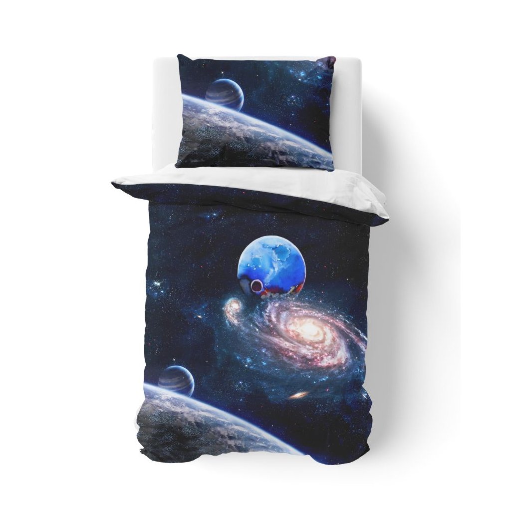 3D povlečení je vyrobeno z jemné bavlněné tkaniny. Inovací tohoto povlečení je dosaženo použitím digitálního tisku, kde vyniknou lépe barvy a samotné desény. Povlečení s digitálním tiskem je nyní již cenově dostupné a může si jej dopřát opravdu každý. Moderní 3D povlečení je vyrobeno se zipem. Povlečení s vesmírnou tématikou Vás rázem přenese na oběžnou dráhu země.