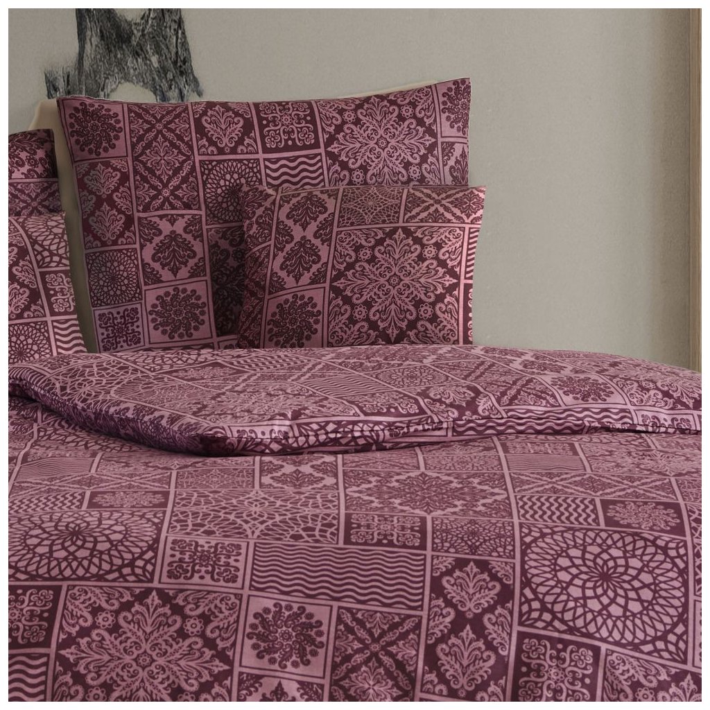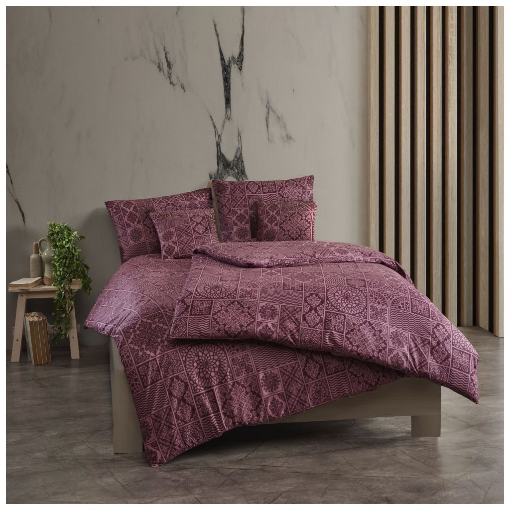 Kvalitní bavlněné povlečení typu renforcé je ideální volbou do moderní ložnice. Hebké na dotek, prodyšné a odolné – nabízí komfortní spánek po celý rok. Dodejte své ložnici styl a eleganci s povlečením Tokyo vínové - povlečení se světejším bordó geometrickým a orientálním vzorem v mozaikovém stylu.