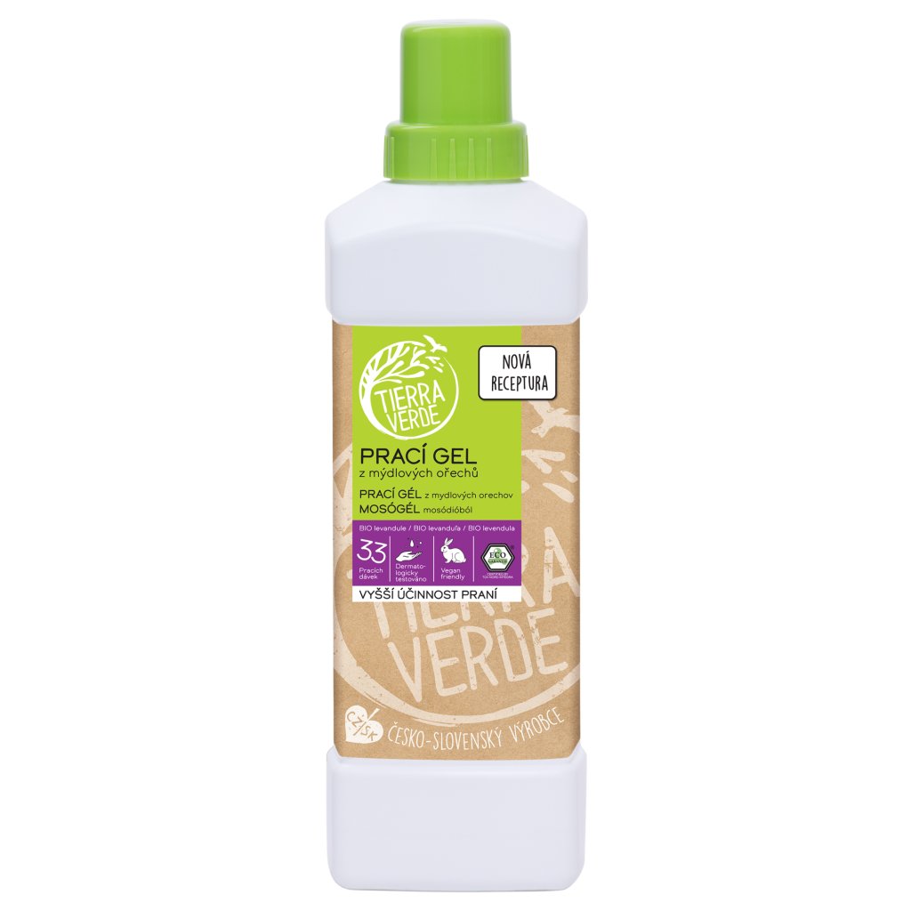 Inovovaný prací gel voní po přírodním levandulovém éteráčku a hodí se především na praní barevného prádla. Vyšší podíl rostlinných tenzidů a extraktu z mýdlových ořechů vypere oblečení ještě efektivněji než dříve. Prádlo zanechá měkoučké, avivážní prostředky tudíž nebudete potřebovat. Vychytaná receptura je z 99 % přírodní a tak šetrná, že se hodí i pro rodiny s malými dětmi a citlivé osoby. Koncentrované složení šetří peněženku i přírodu a jeho kvalitu i plnou odbouratelnost v přírodě zaručuje přísný certifikát Ecogarantie®.[[8veciprani]]