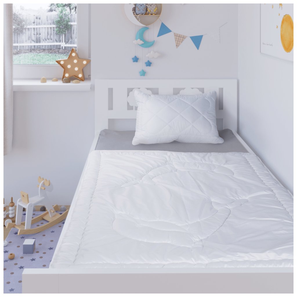Dětská přikrývka je plně protialergiká a zajišťuje miminku spokojený a příjemný spánek.