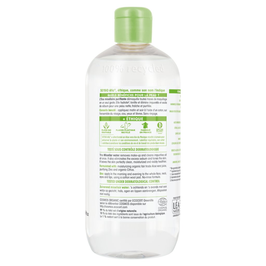 SO’BiO étic Voda micelární Aloe Vera čisticí - zinek a citrusy BIO (500 ml) - ideální pro smíšenou až mastnou pleť