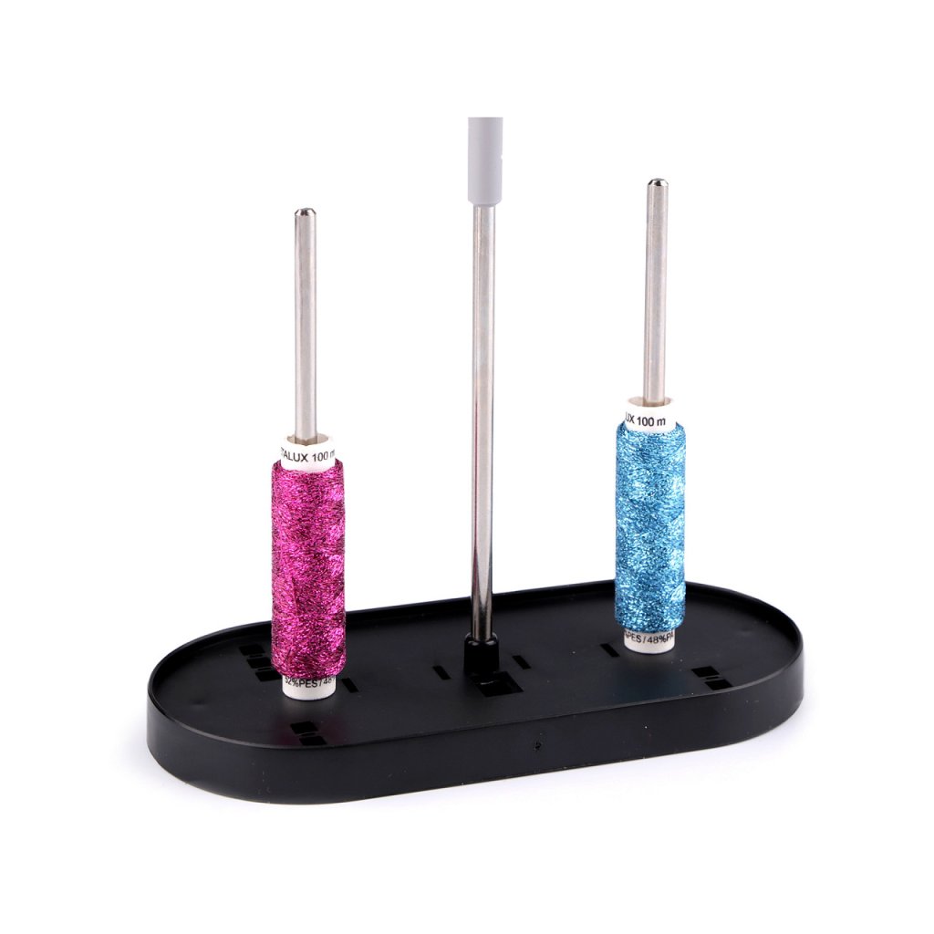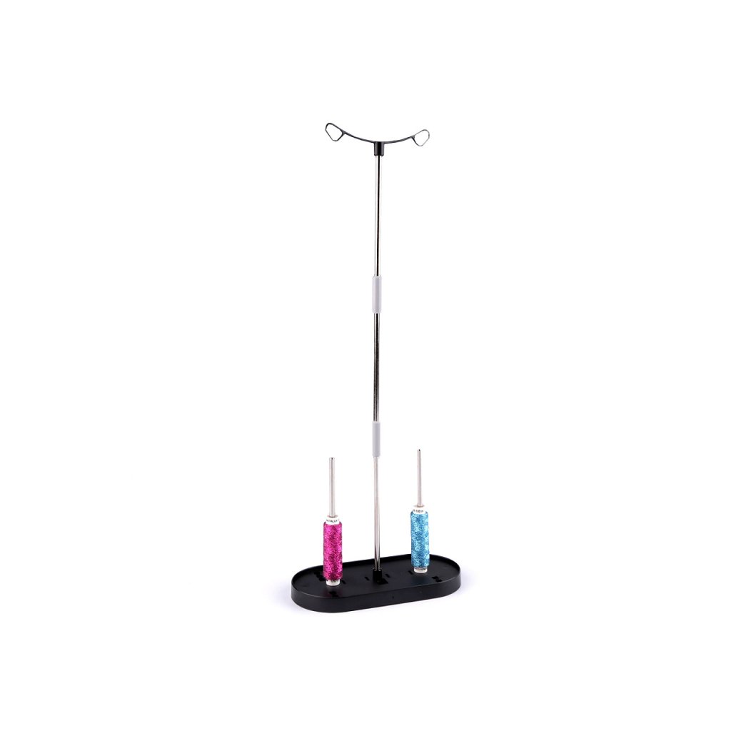 Stojan vám poslouží jako doplněk k šicímu stroji. Má držák na dvě nitě. Je lehký, přenosný, skladný a vhodný pro šicí i vyšívací stroje. Protiskluzové nožičky zajišťují dobrou stabilitu.
