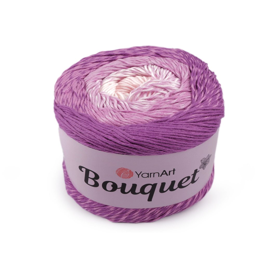 Bavlněná pletací příze Bouquet je zajímavá svými pozvolnými barevnými přechody, se kterými budou všechny výrobky vypadat originálně. Je velmi příjemná na těle a vhodná na pletení i háčkování plédů, letních svetříků, ponč, šálů apod.