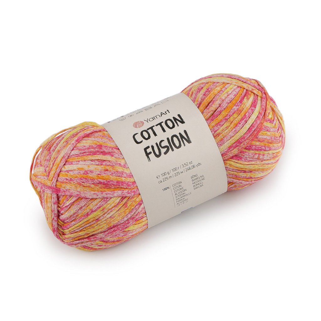 Z pletací příze Cotton Fusion uháčkujete či upletete oděvy příjemné na tělo zvláště v letních měsících. Je vhodná na svetříky, topy, halenky apod. Hotové výrobky jsou lehké, dobře drží tvar a jsou odolné proti opotřebení. Melírované zabarvení dodává výrobkům šmrnc a neotřelý vzhled.