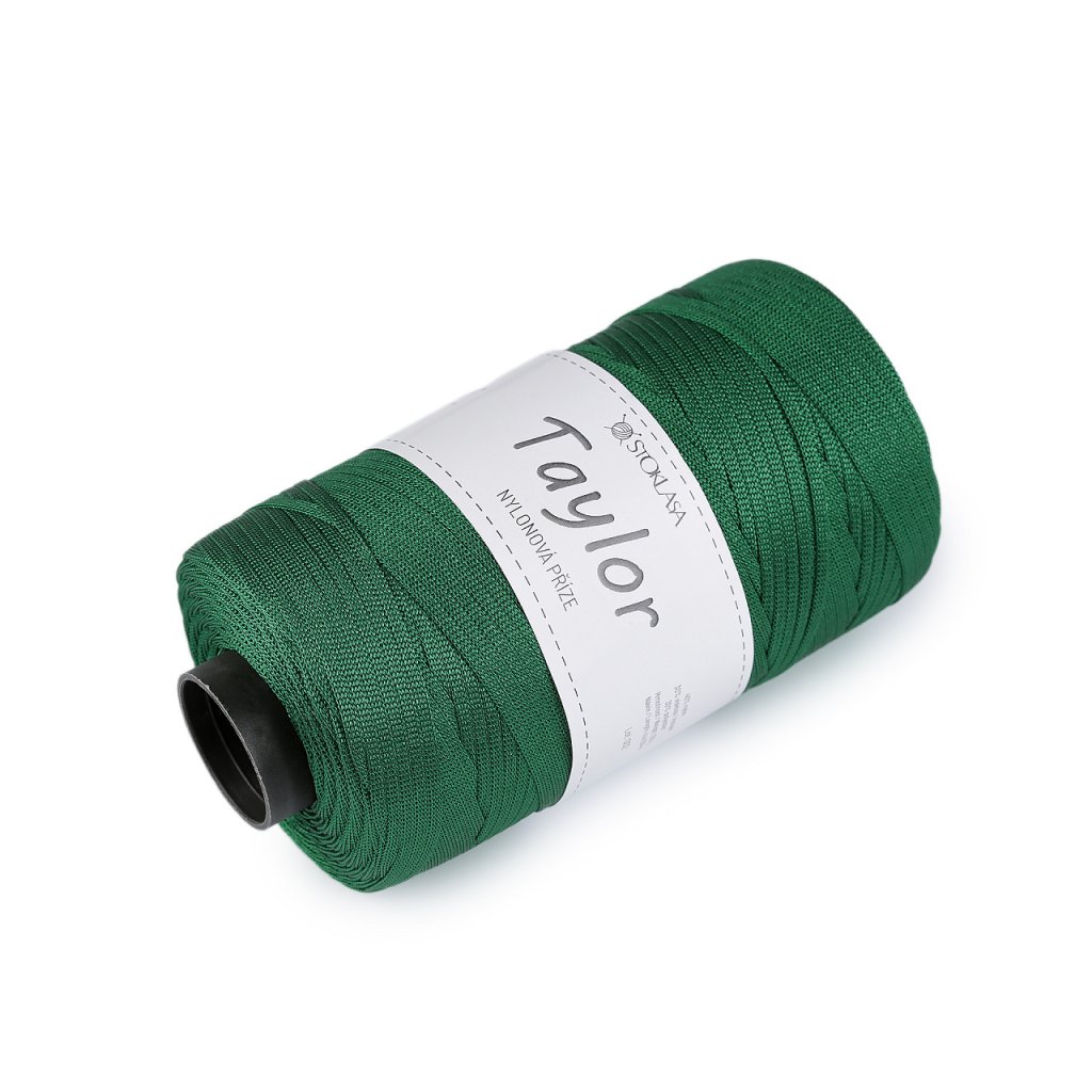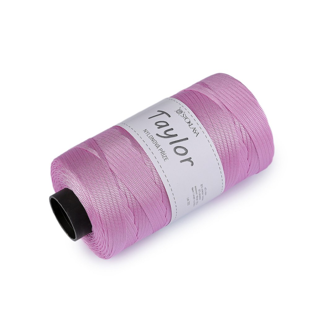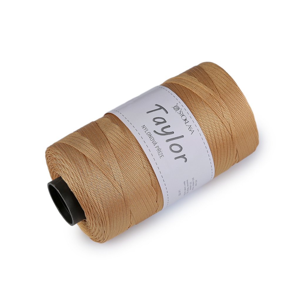 Pletací příze Taylor je plochá a připomíná provázek. Jemně se leskne. Využijete ji na pletení a háčkování tašek, košíků a podobných výrobků.