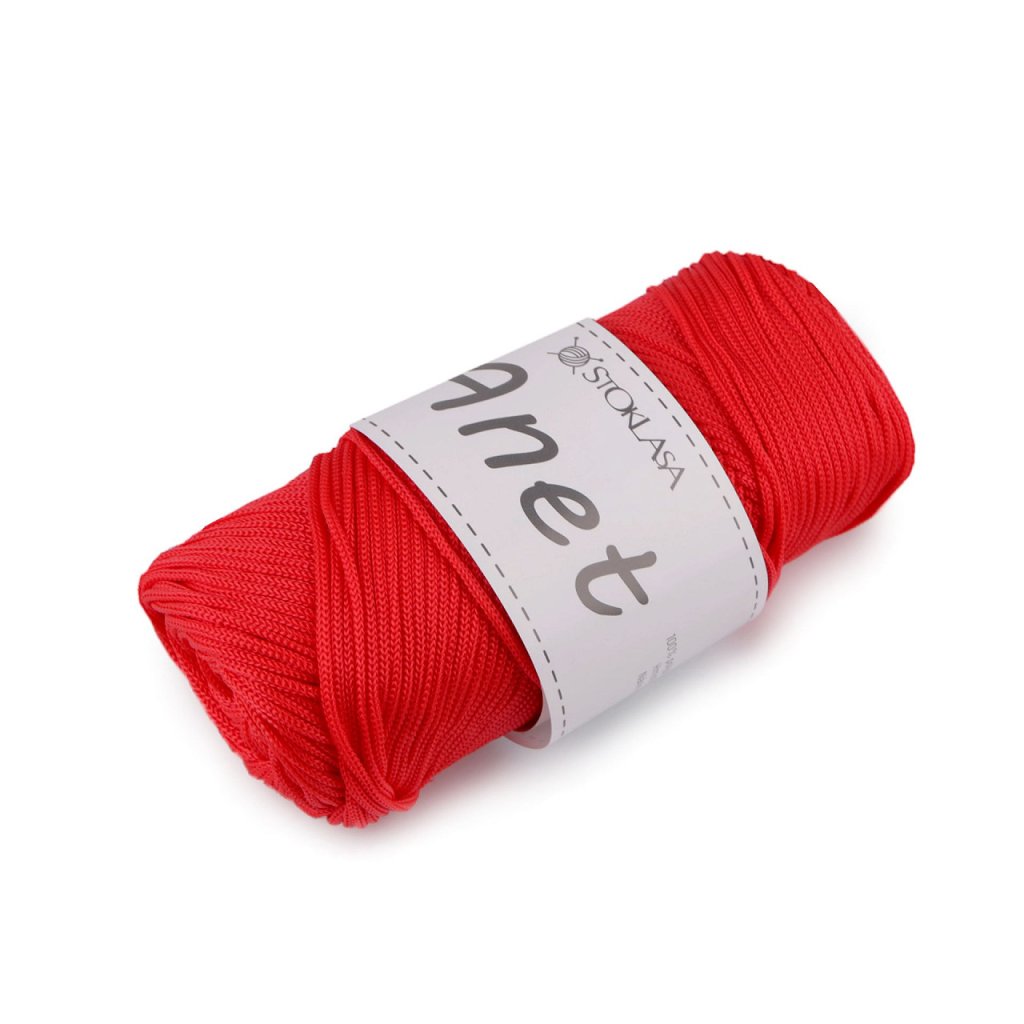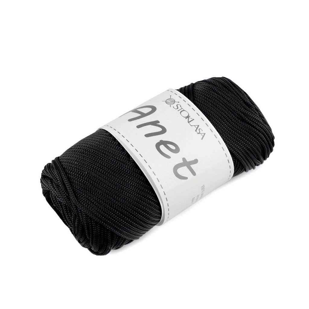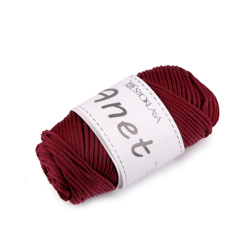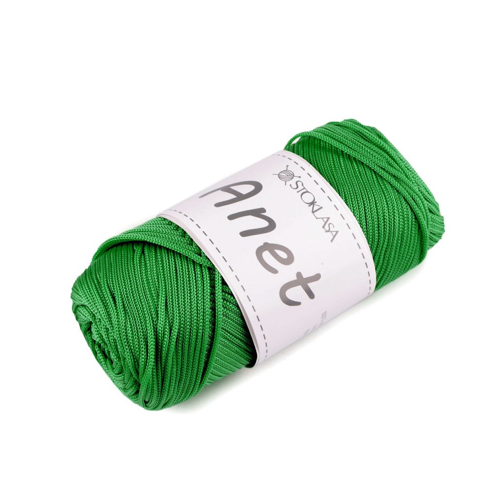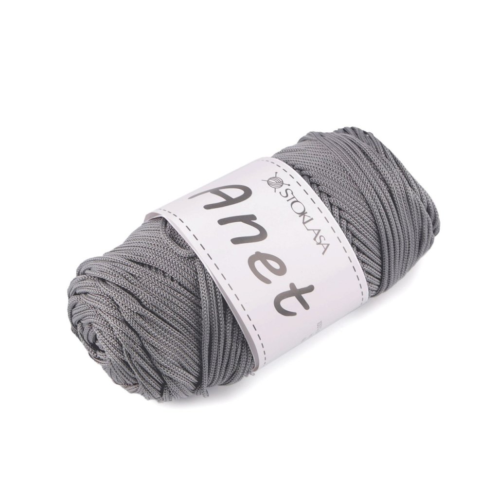 Pletací příze Anet připomíná provázek a má jemně lesklý povrch. Hodí se na pletení a háčkování tašek, košíků a podobných výrobků i na techniku macrame.