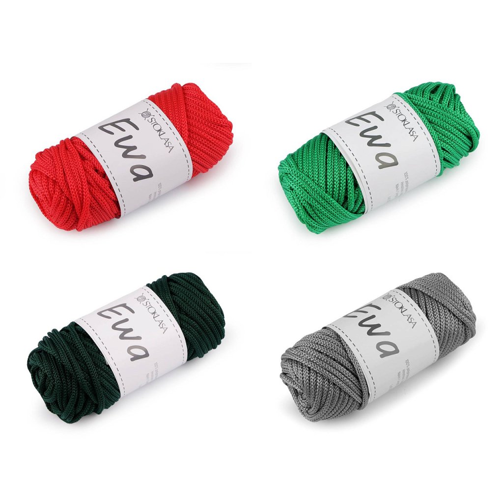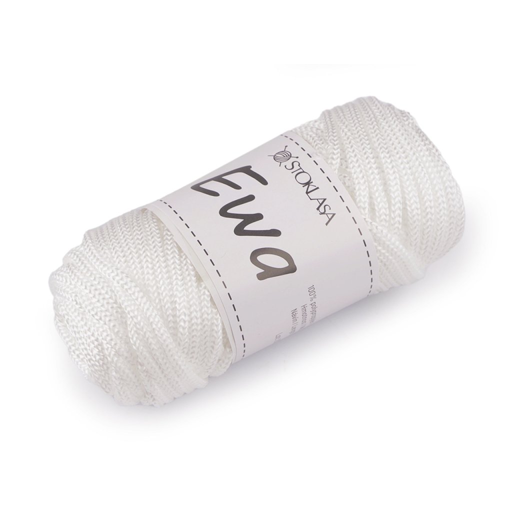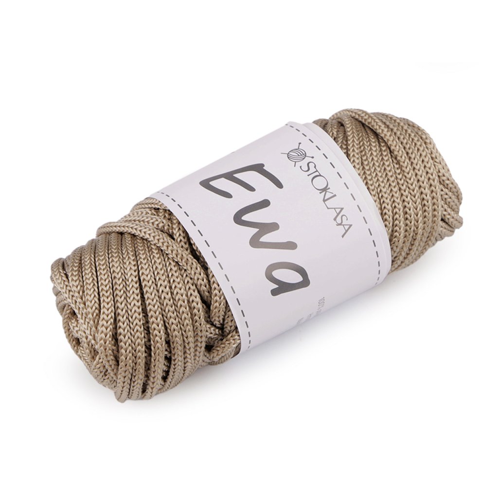 Pletací příze Ewa svým zpracováním připomíná provázek. Její povrch se jemně leskne. Hodí se na pletení a háčkování tašek, košíků a podobných výrobků či dekorací.