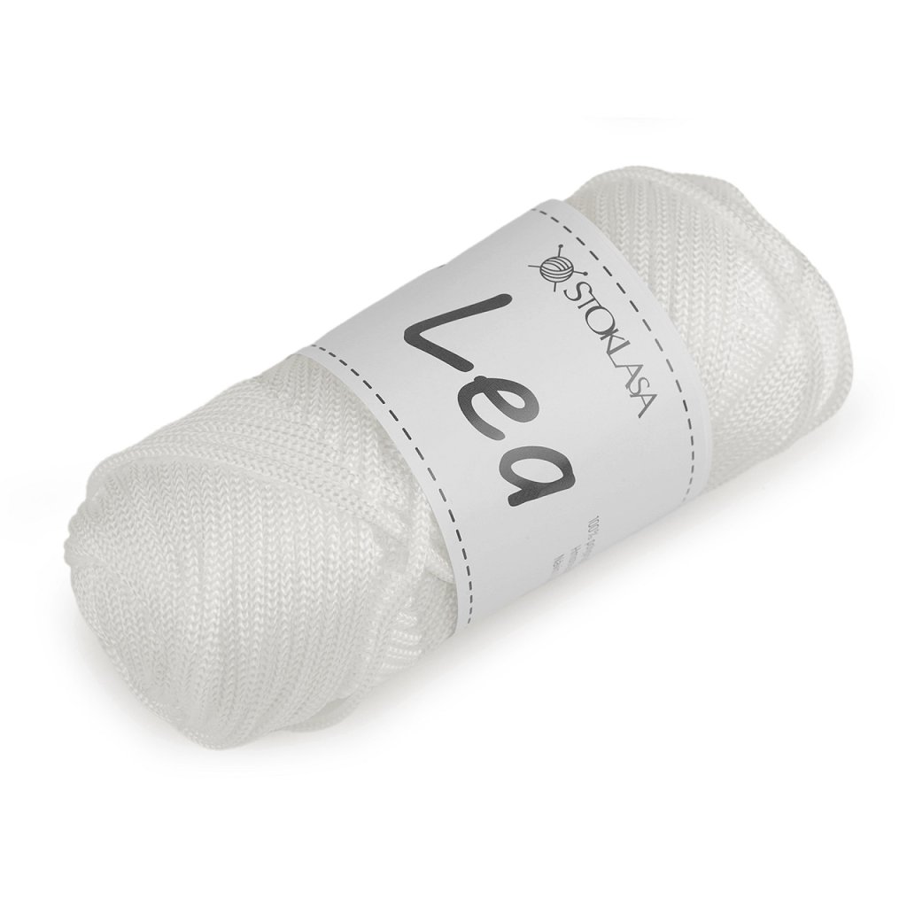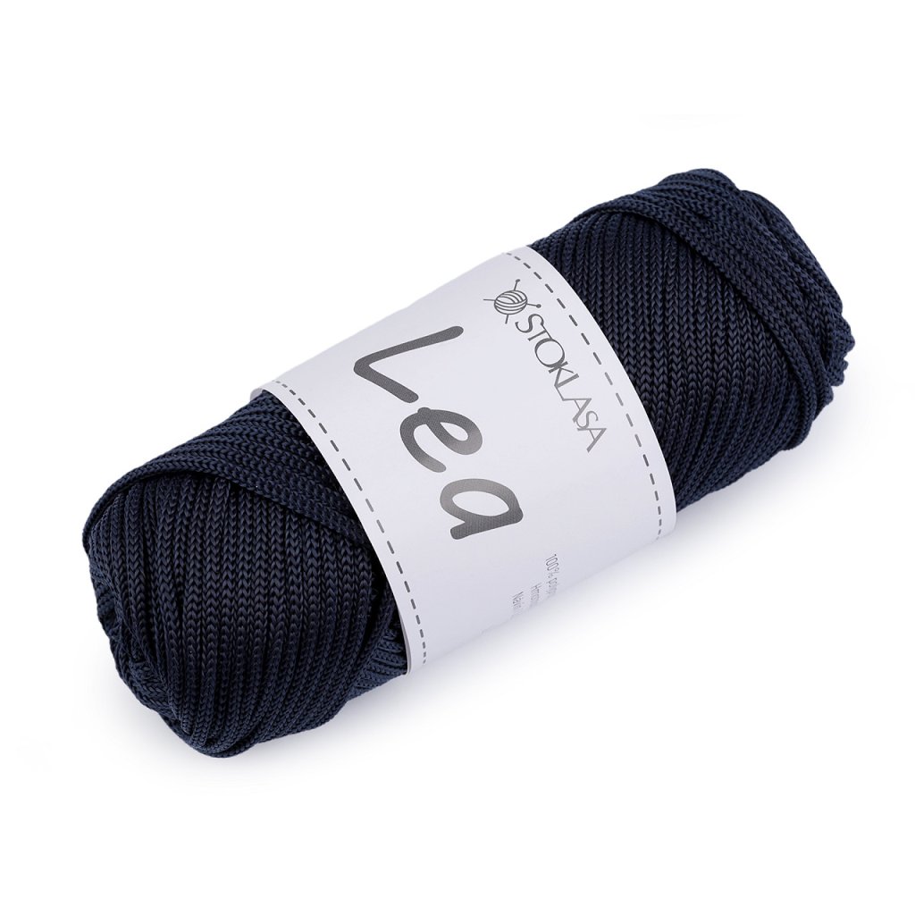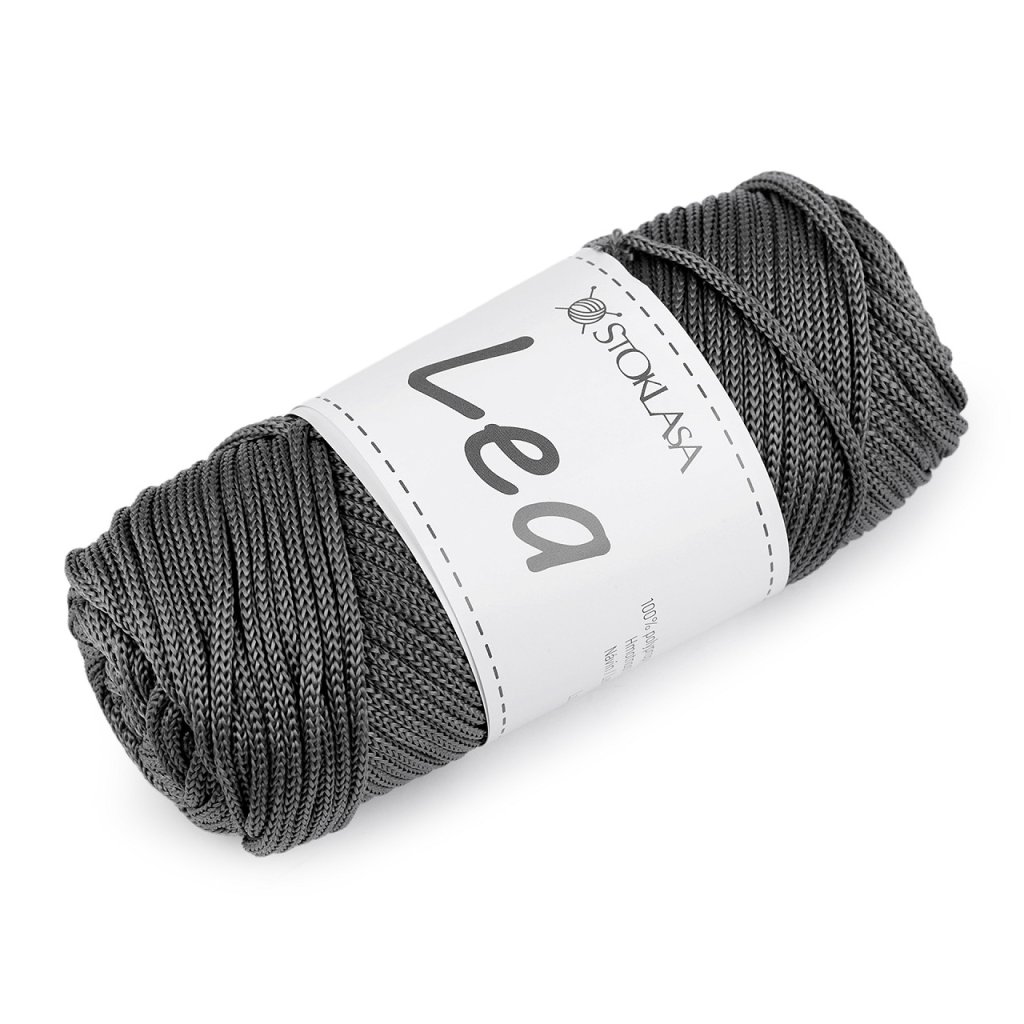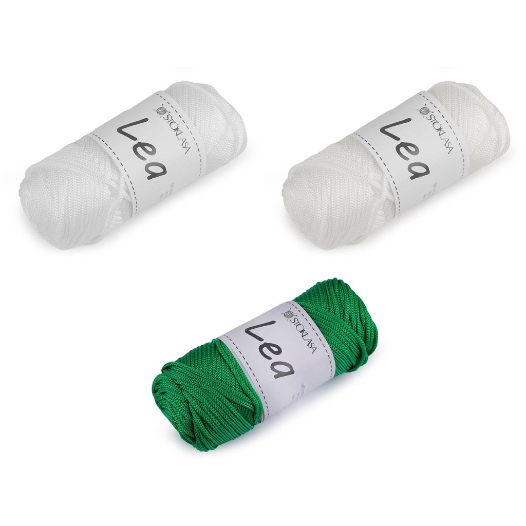 Pletací příze Lea připomíná provázek. Její povrch se jemně leskne. Hodí se na pletení a háčkování tašek, košíků a podobných výrobků.