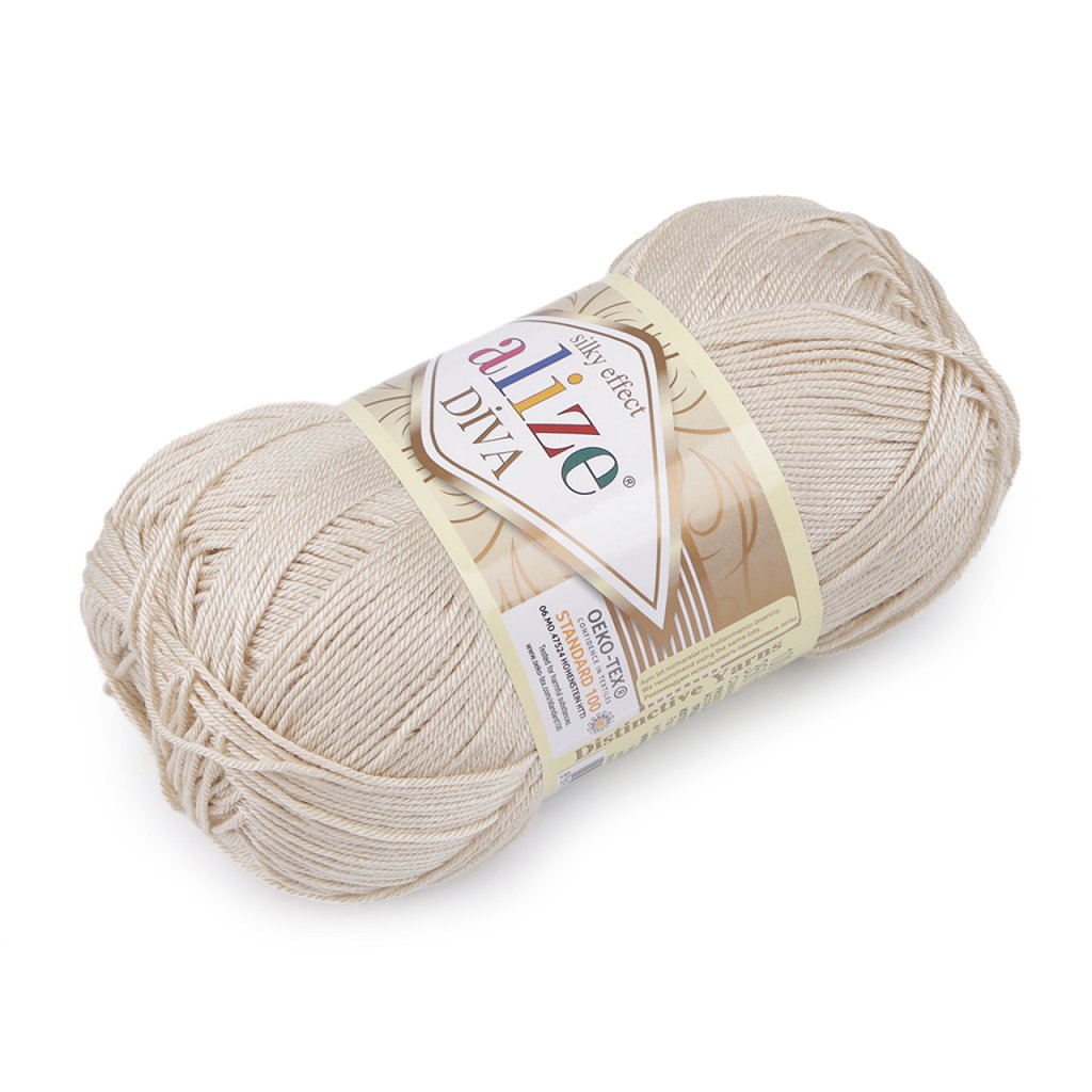Pletací příze Alize Diva se skvěle hodí na pletení či háčkování lehkých letních modelů (kloboučků, svetříků, tílek, šatů apod.). Je výjimečná povrchovou úpravou "silk effect" s jemným leskem, která dodává hotovému výrobku hedvábný efekt. Na těle je měkká, hladká a neškrábe.