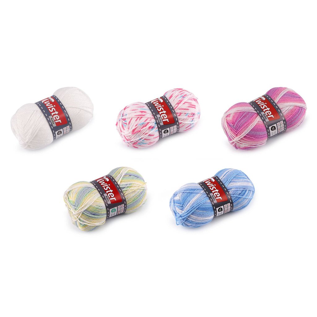Melírovanou přízi Twister Baby využijete na pletení i háčkování dětských svetříků, čepiček, vest, přikrývek, ale i oděvů a doplňků pro dospělé. Je měkká a velmi příjemná na dotek. Jemné barevné přechody dodají výrobkům unikátní vzhled.