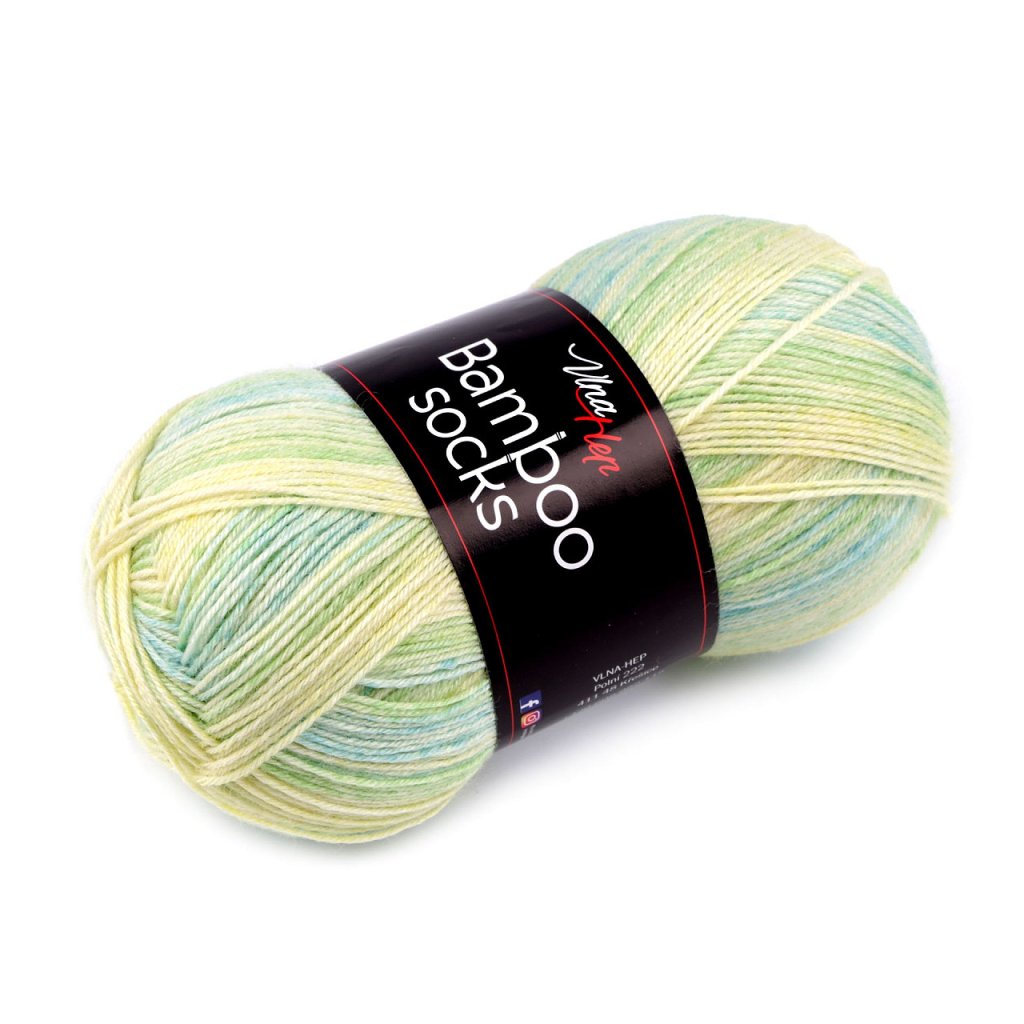 Pletací ponožková příze Bamboo Socks je velice kvalitní. Díky vysokému podílu vlny ponožky zahřejí, bambusová viskóza zajistí odolnost vůči prošlapání a má antialergenní vlastnosti. Je samovzorovací, jedno klubíčko vyjde na jeden pár ponožek pro dospělé nebo 2 páry ponožek pro děti.