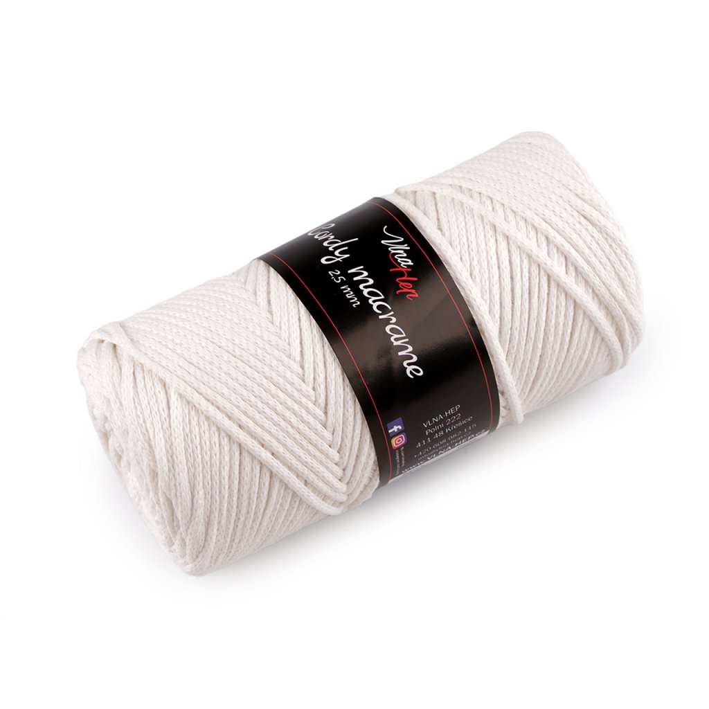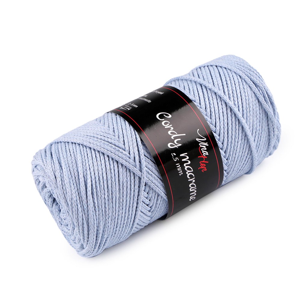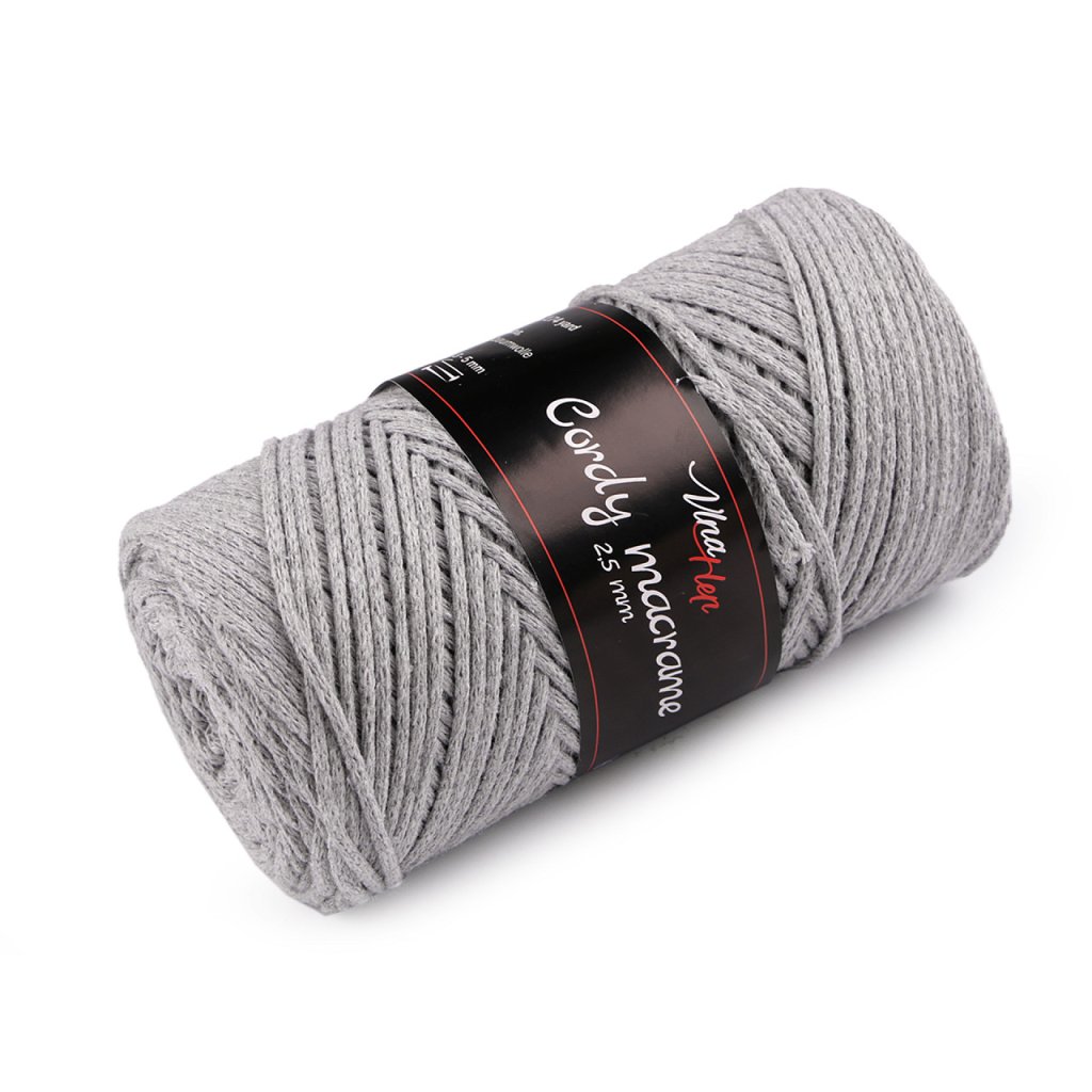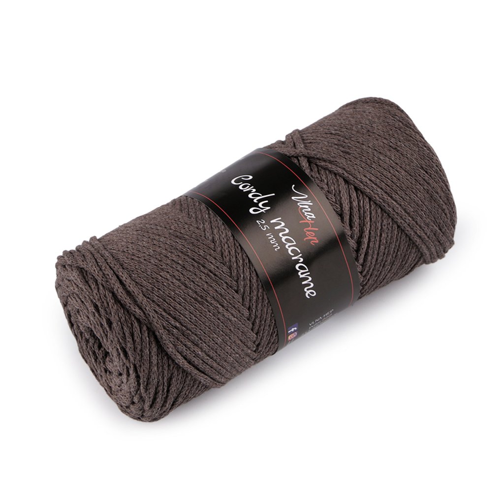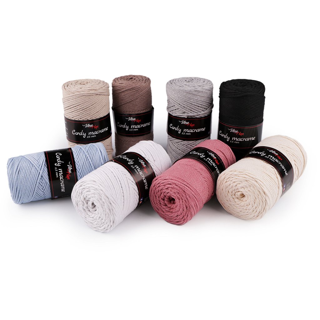 Příze Cordy Macrame je vhodná na pletení nebo háčkování pufů, košíků, koberečků i tašek, ale také na výrobu macrame dekorací. Připomíná provázek.