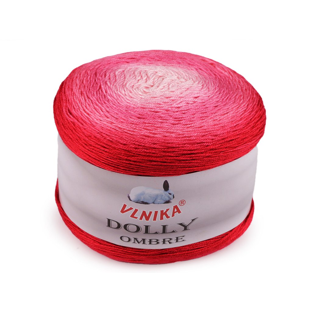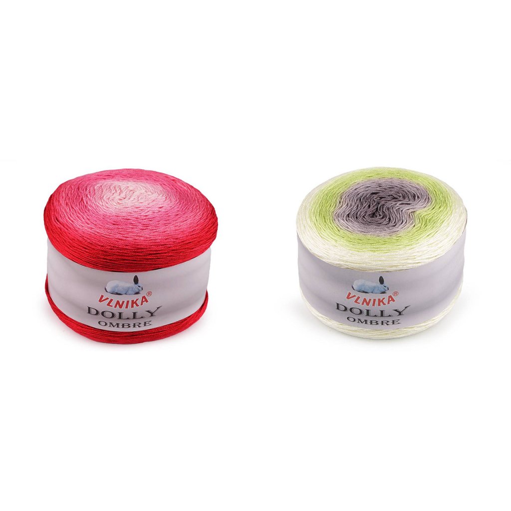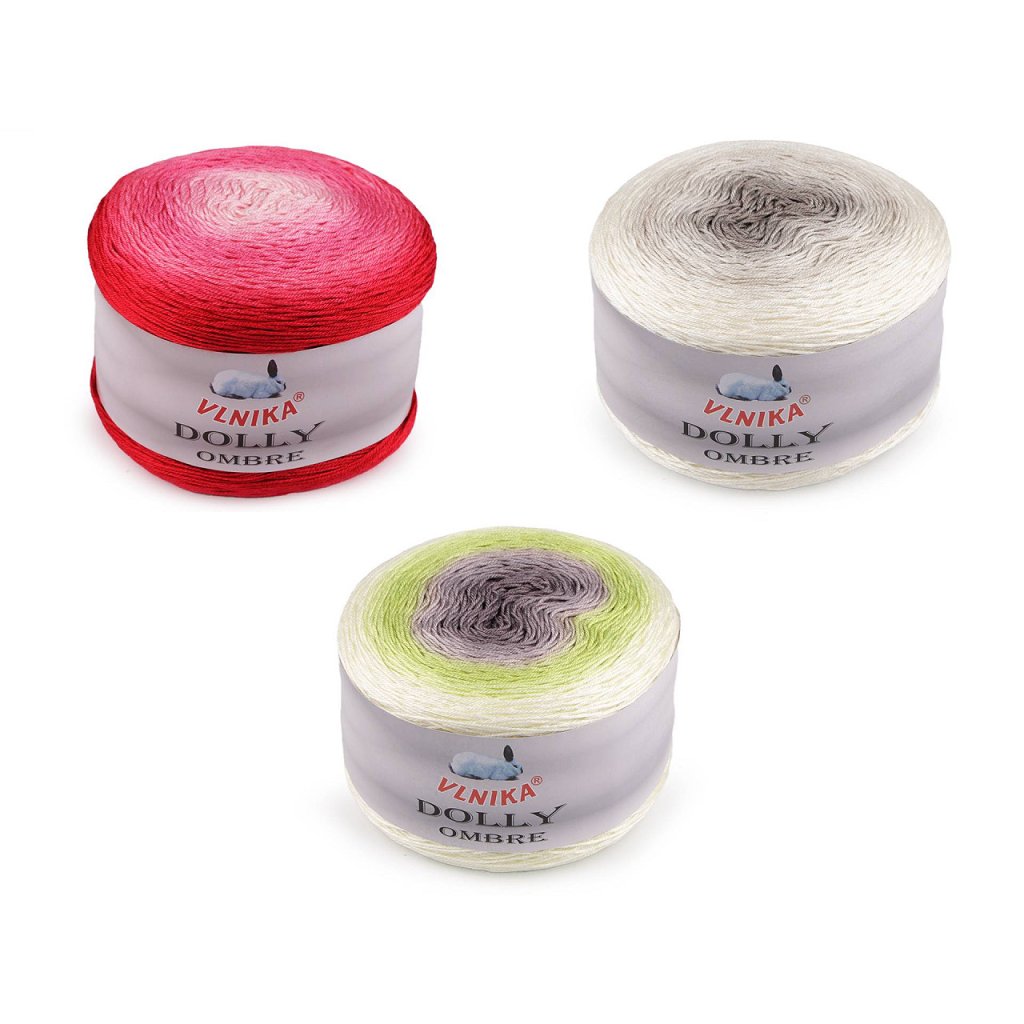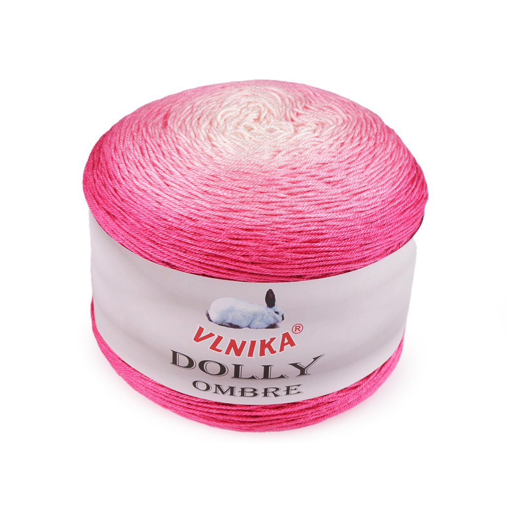 Pletací příze Dolly Ombre je odstupňovaná od nejtmavšího odstínu po nejsvětlejší. Dodá vašim výrobkům poutavý a originální vzhled. Je měkká a příjemná na dotek. Můžete z ní uplést či uháčkovat lehké svetříky, šály, šátky apod.