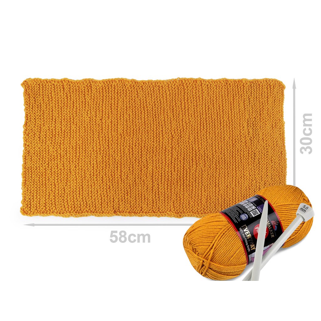 Vzorek na fotografii (58 x 30 cm) byl upleten z 1 klubíčka, jehlicemi č. 5.