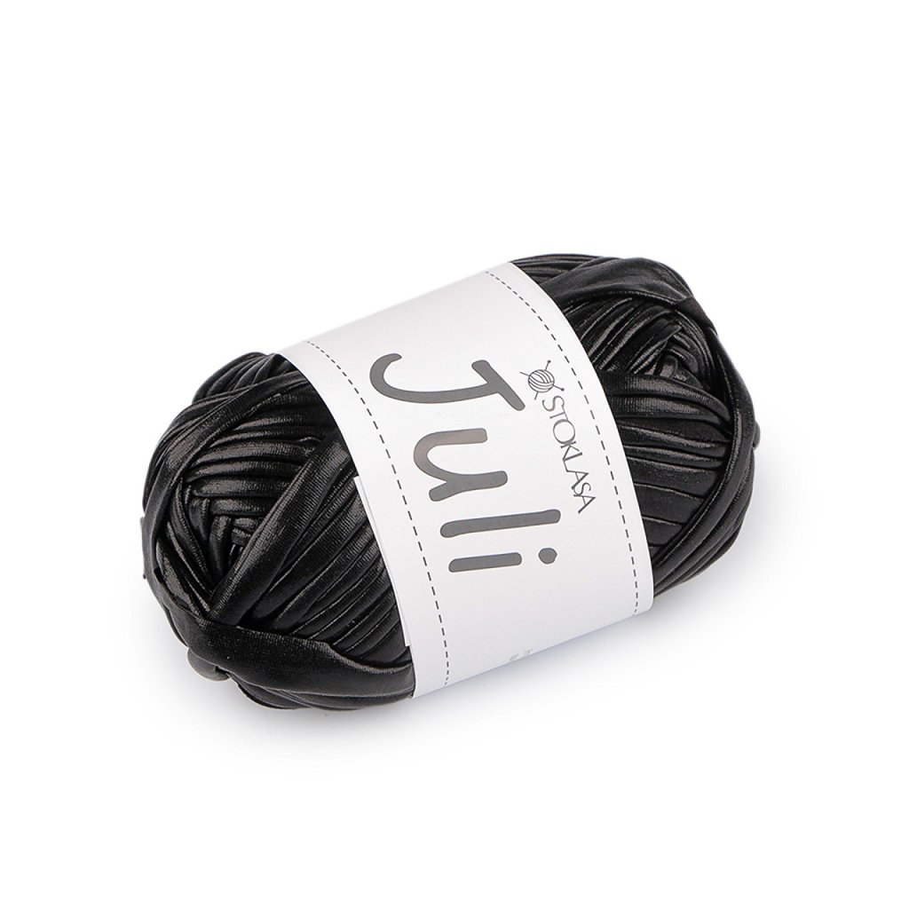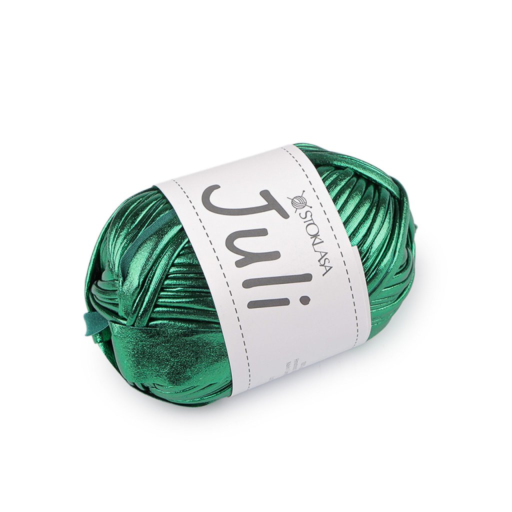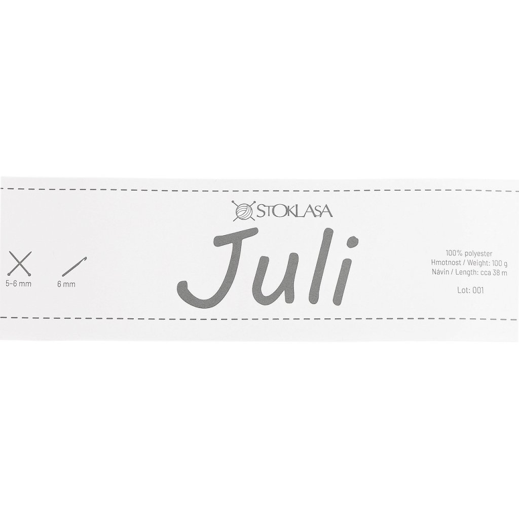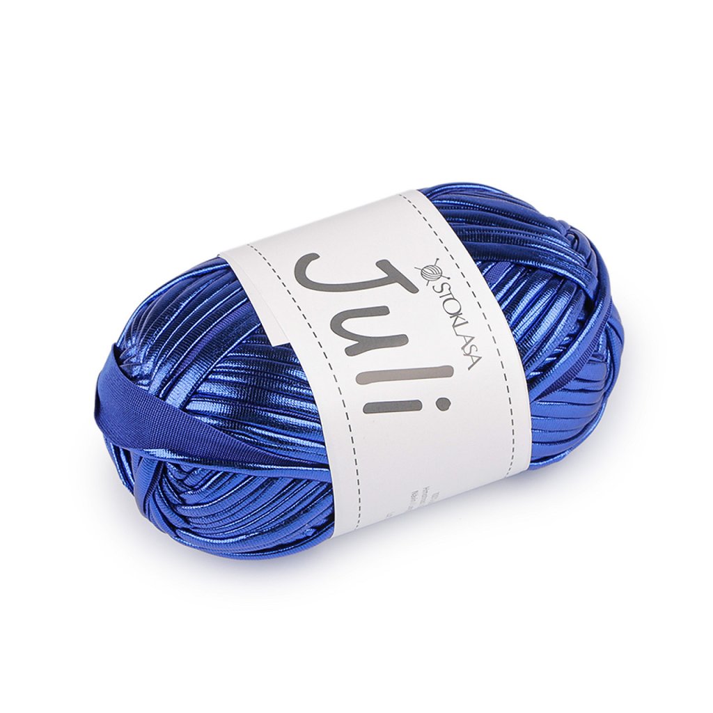 Příze Juli má efektní metalický lesk, který dodá exkluzivitu každému výrobku. Příze je elastická a měkká a dobře se s ní pracuje. Můžete z ní uplést či uháčkovat kabelky, batůžky, košíčky, peněženky, ale dají se z ní tvořit i zajímavé šperky.