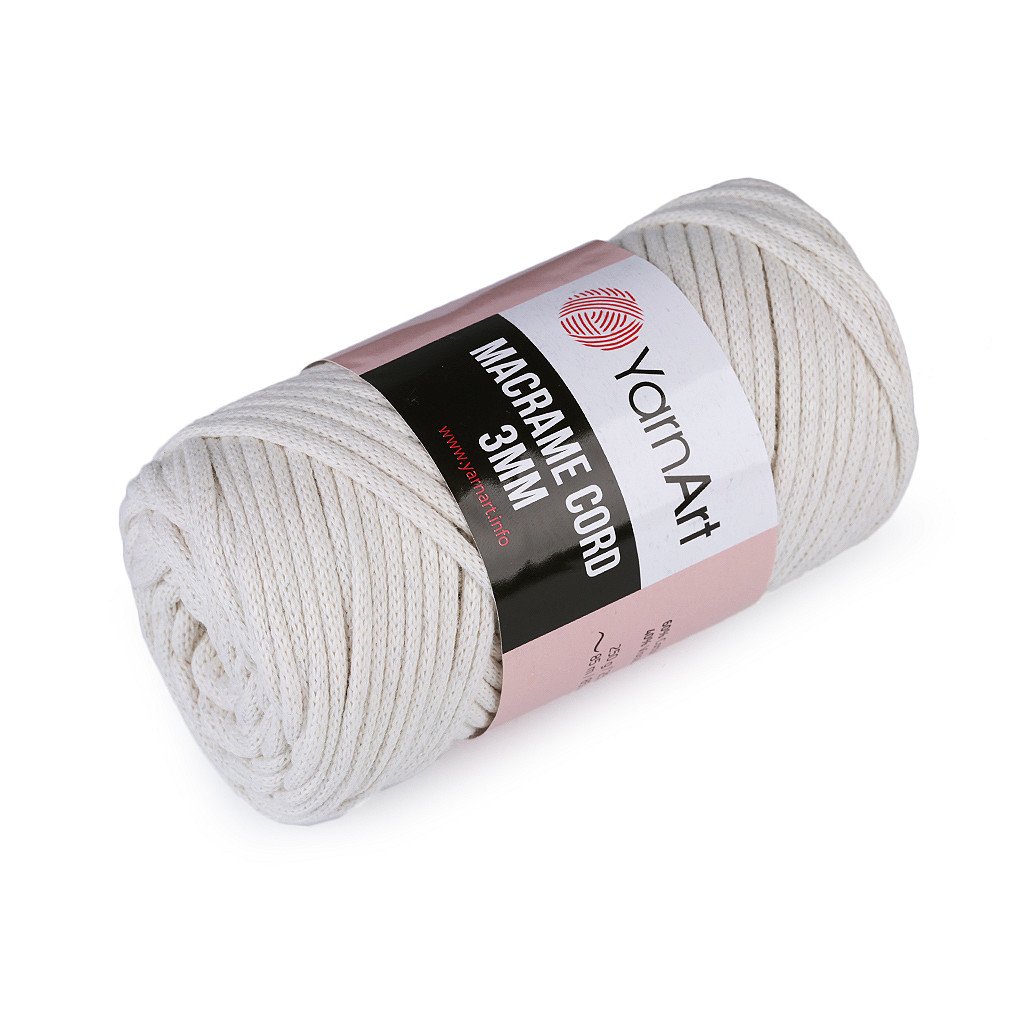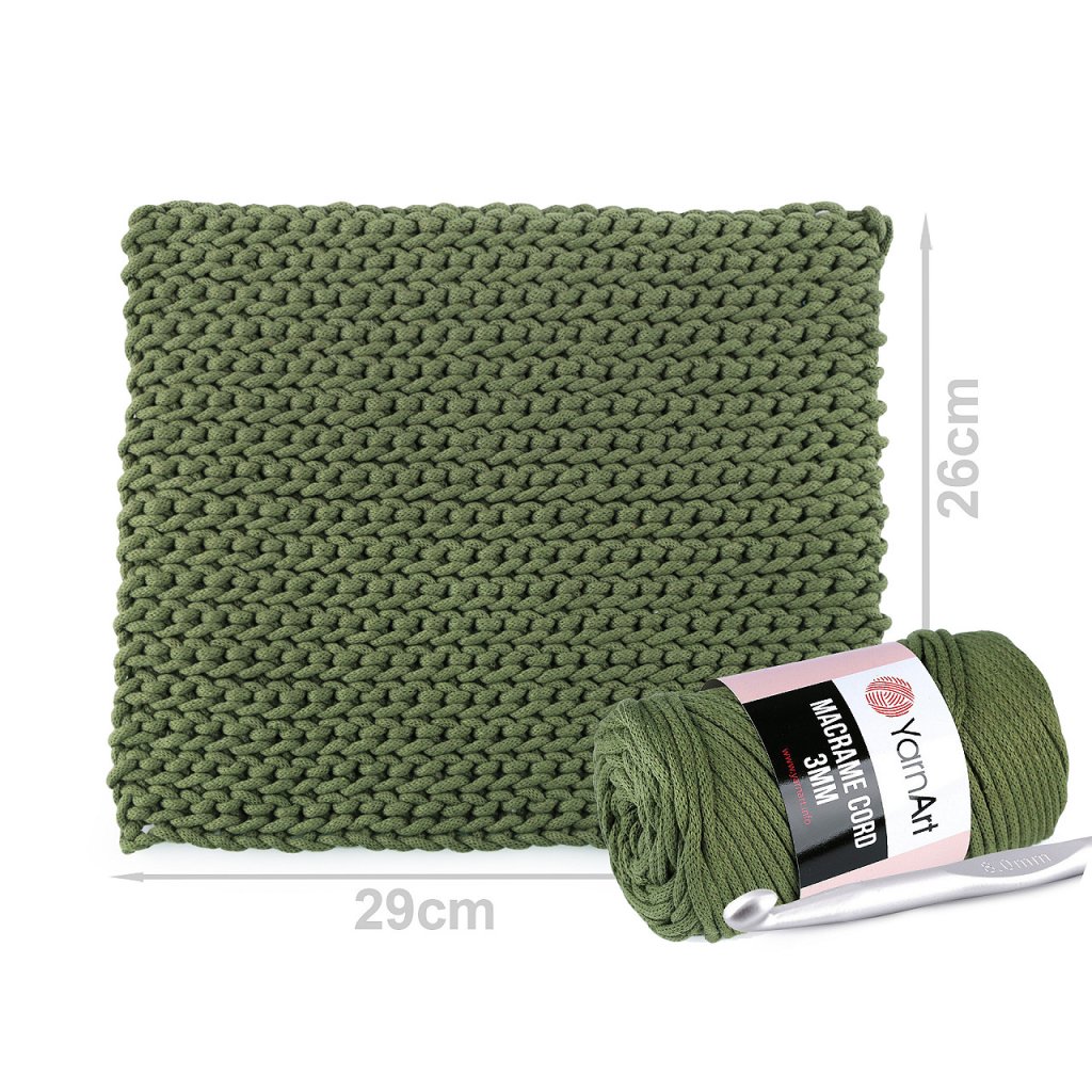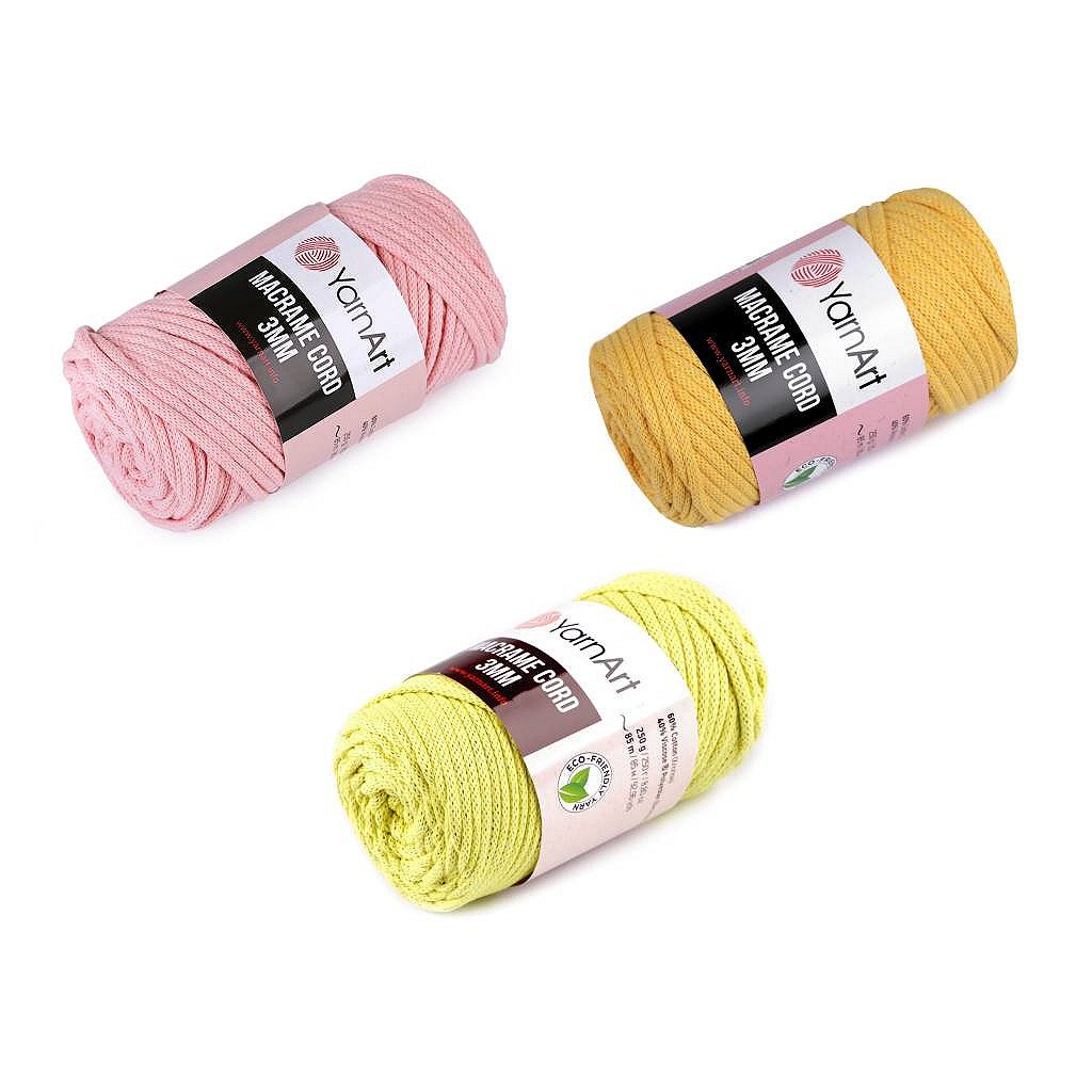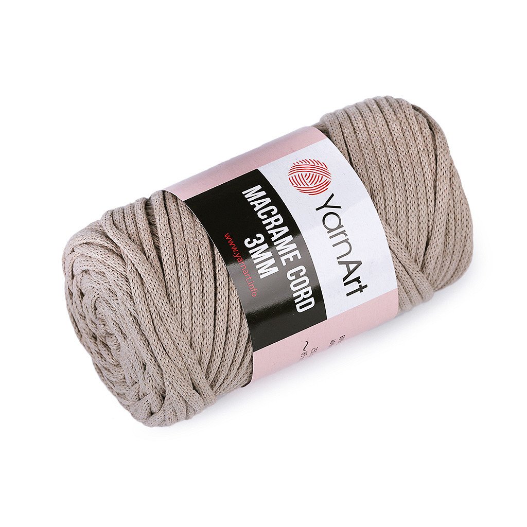Příze Macrame Cord připomíná provázek. Využijete ji na pletení nebo háčkování pufů, košíků, koberečků i tašek.