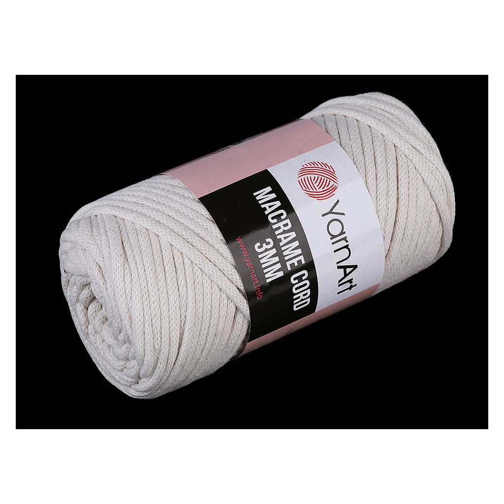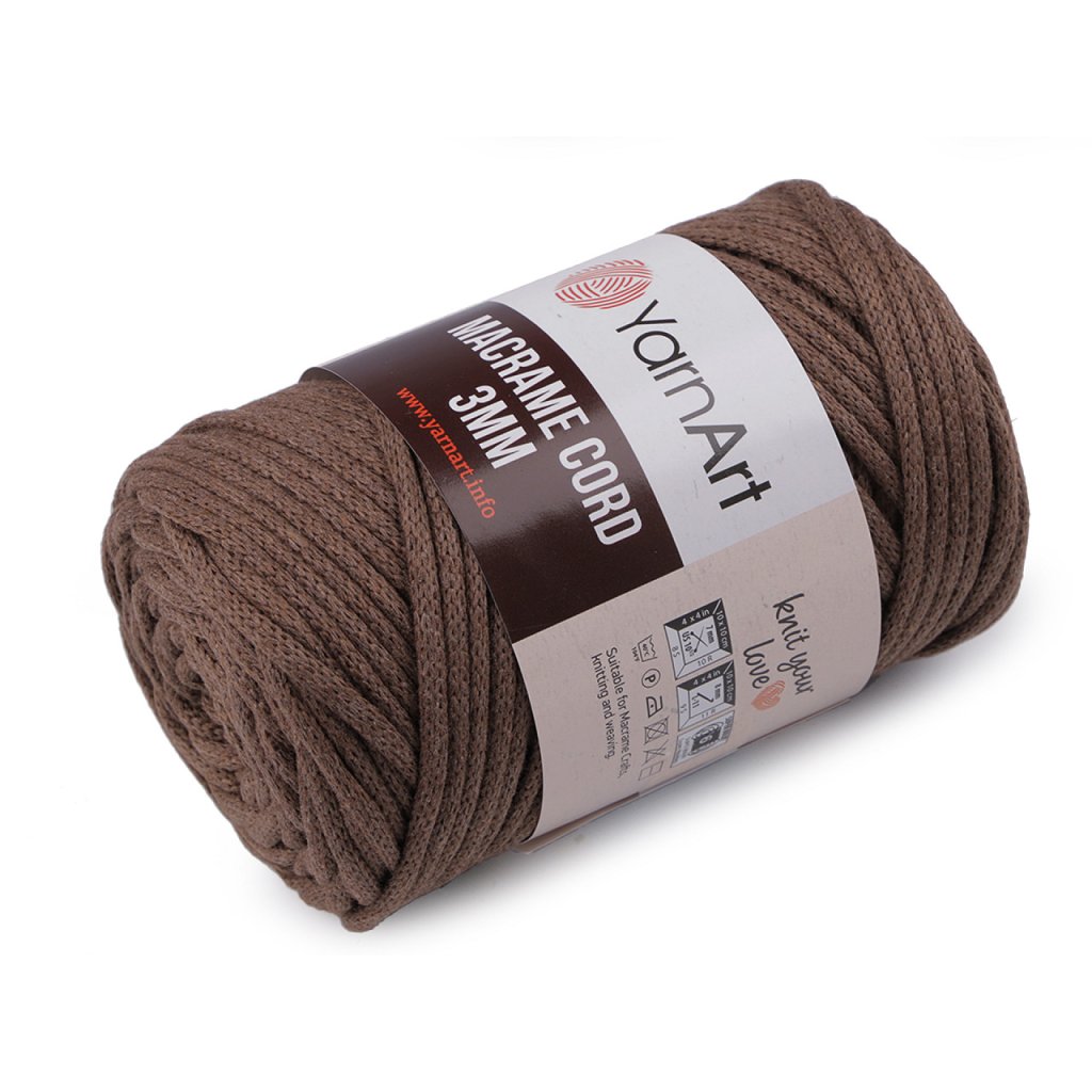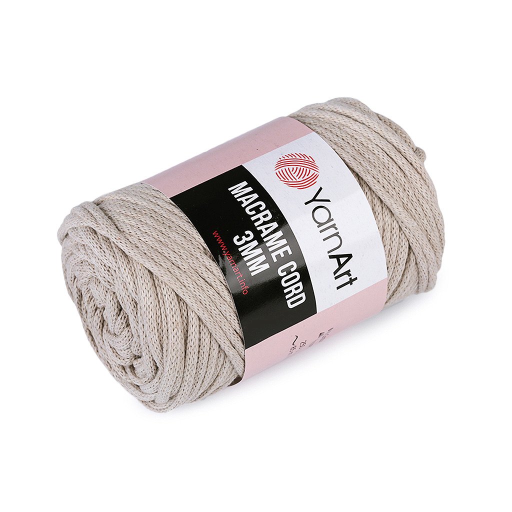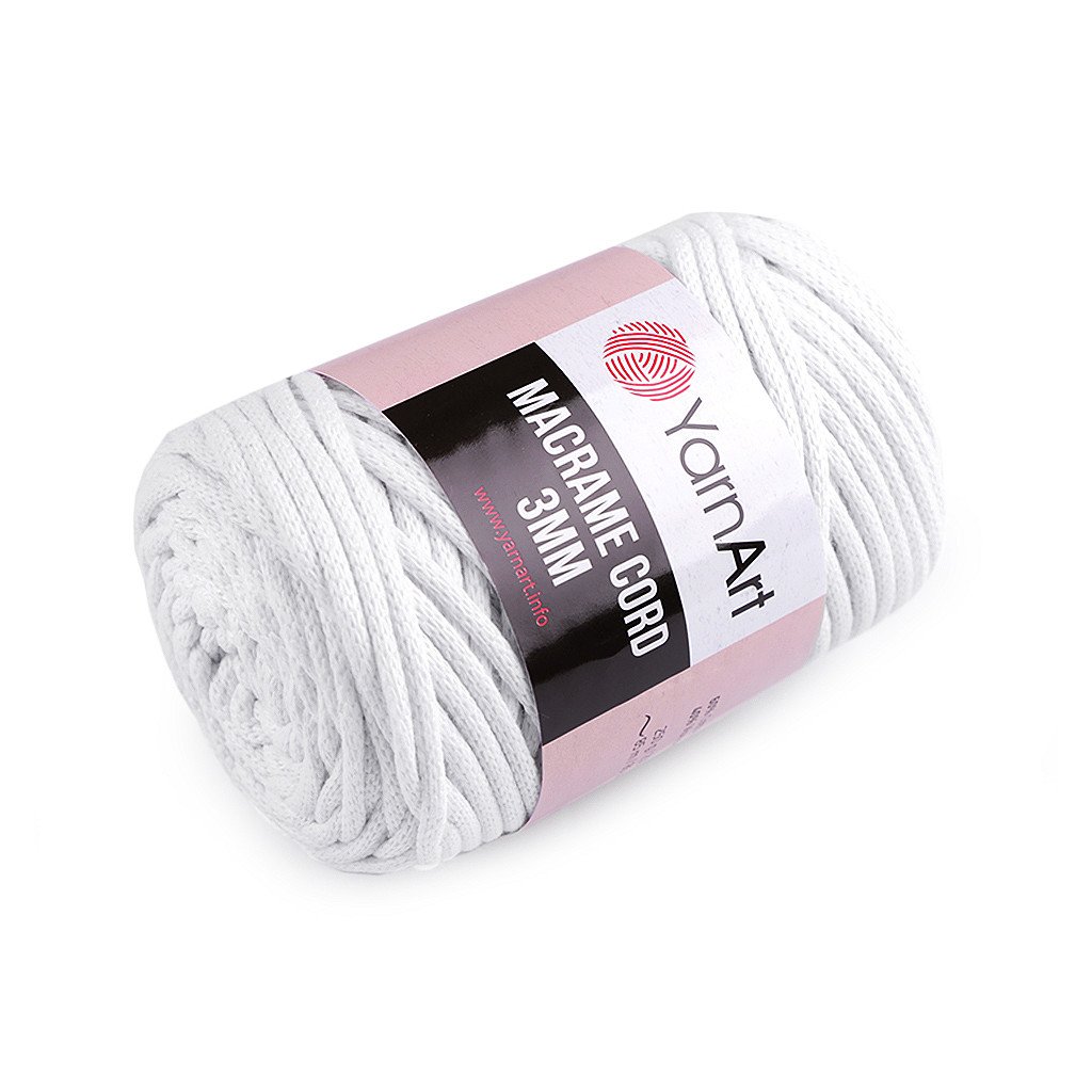 Příze Macrame Cord připomíná provázek. Využijete ji na pletení nebo háčkování pufů, košíků, koberečků i tašek.
