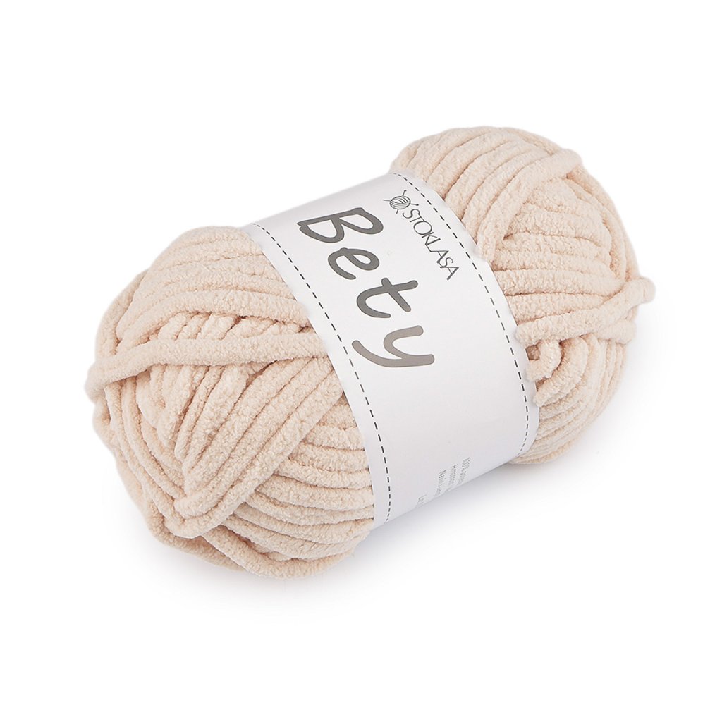 Žinylková příze Bety je velmi příjemná na dotek. Využijete ji na pletení měkkých a hřejivých svetrů, šálů, čepic, vest apod.