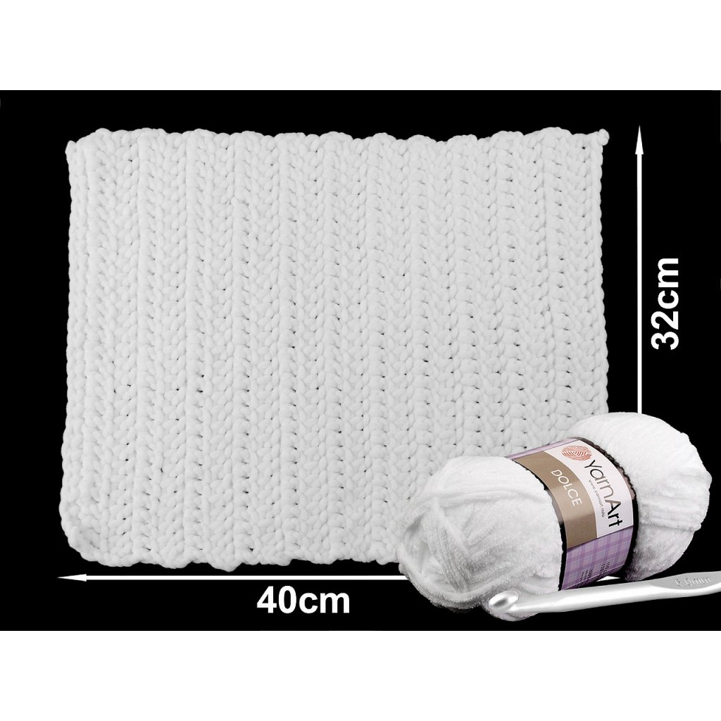Vzorek na fotografii (40 x 32 cm) byl uháčkován z 1 klubíčka, háčkem č. 6,5.