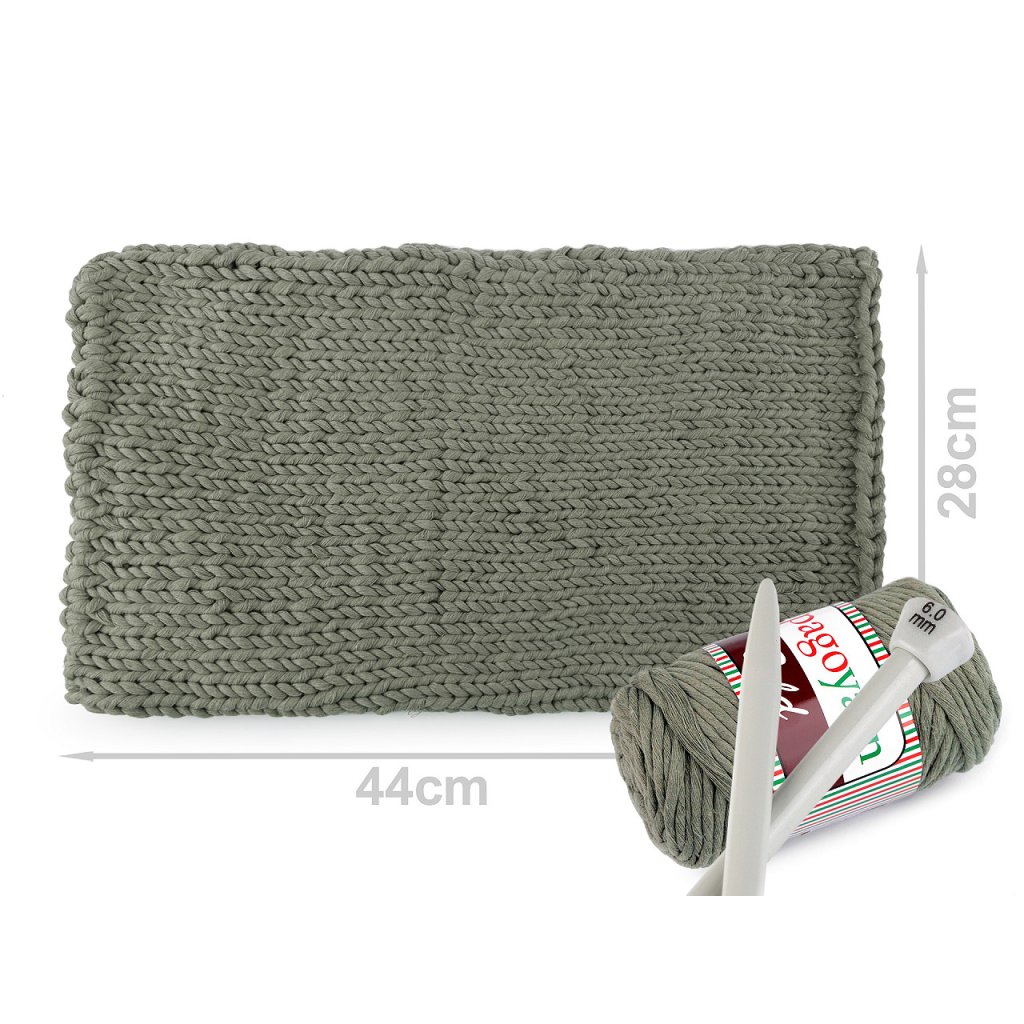 Vzorek na fotografii (44 x 28 cm) byl upleten z 1 klubíčka, jehlicemi č. 6.
