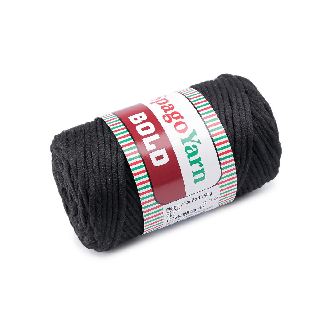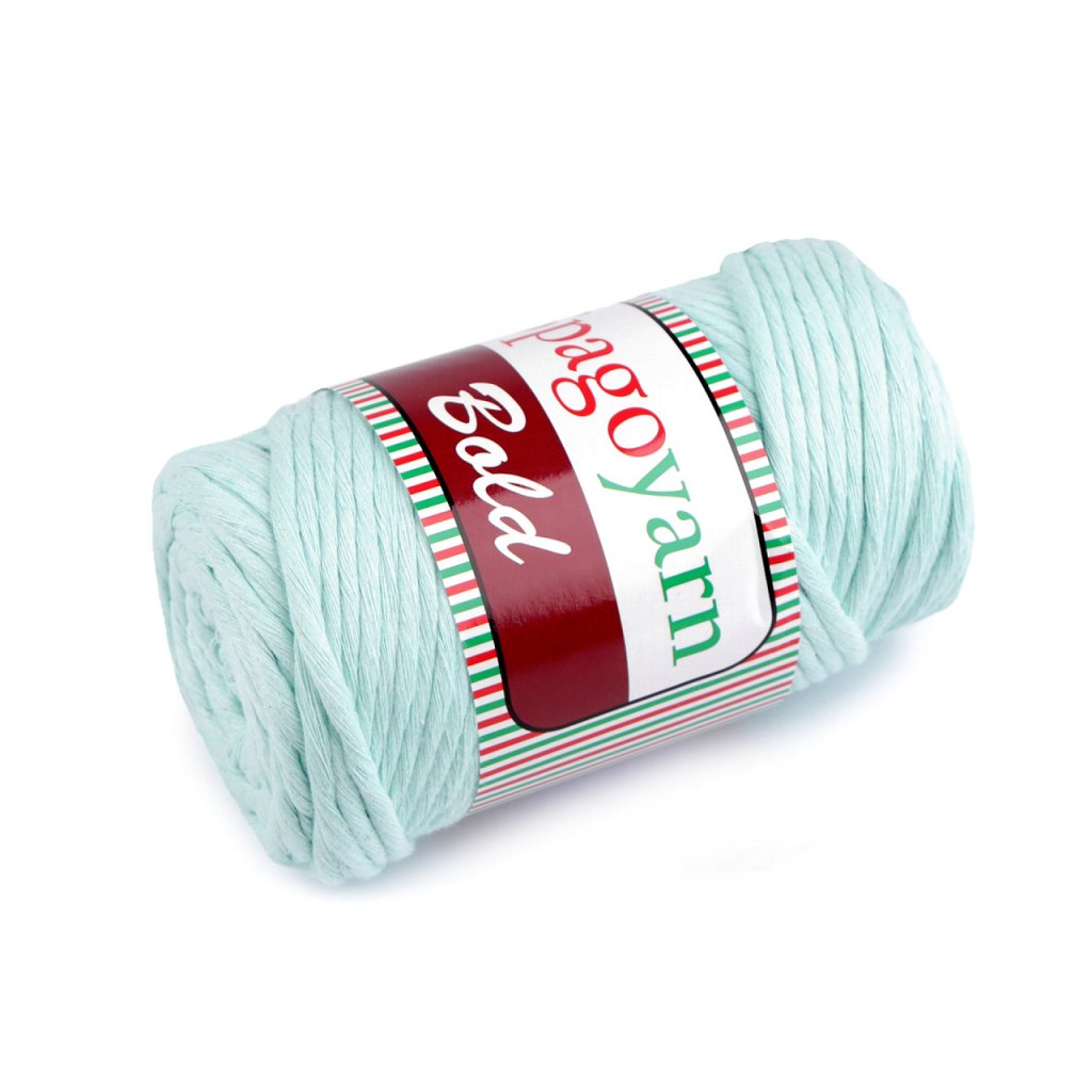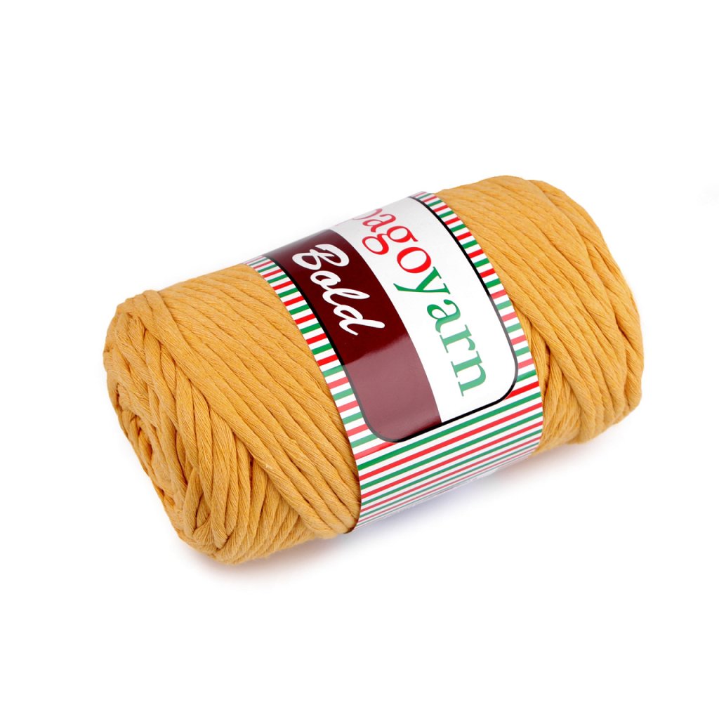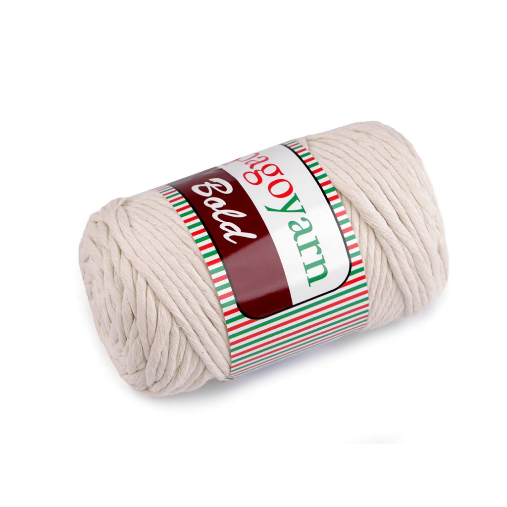 Bavlněná pletací příze Spagoyarn Bold je volně stočená špagátová příze, kterou využijete na pletení a háčkování koberečků, tašek, kabelek a jiných různých doplňků. Díky svému provedení je ideální na techniku macramé (drhání). Skvěle se s ní pracuje a dá se hezky rozčesat. Můžete z ní vyrobit různé interiérové doplňky nebo závěsné dekorace.