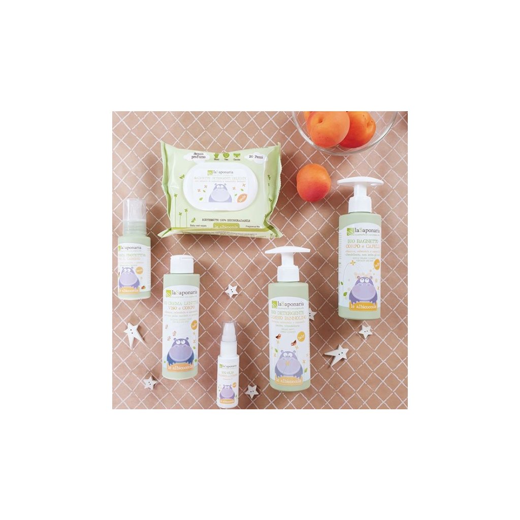 Ta nejcitlivější dětská pokožka si zaslouží speciální a čistě přírodní péči. Jemný čisticí gel bez parfemace a s praktickým dávkovačem pomůže ochránit a správně pečovat o citlivou pokožku těch nejmenších drobečků. Extra panenský olivový olej a výtažky z meruněk, heřmánku a aloe vera uklidní podráždění na zadečku a zanechají pokožku krásně vláčnou. Kromě šetrnosti o BIO kvalitě gelu svědčí také certifikace Cosmetici Biologici.