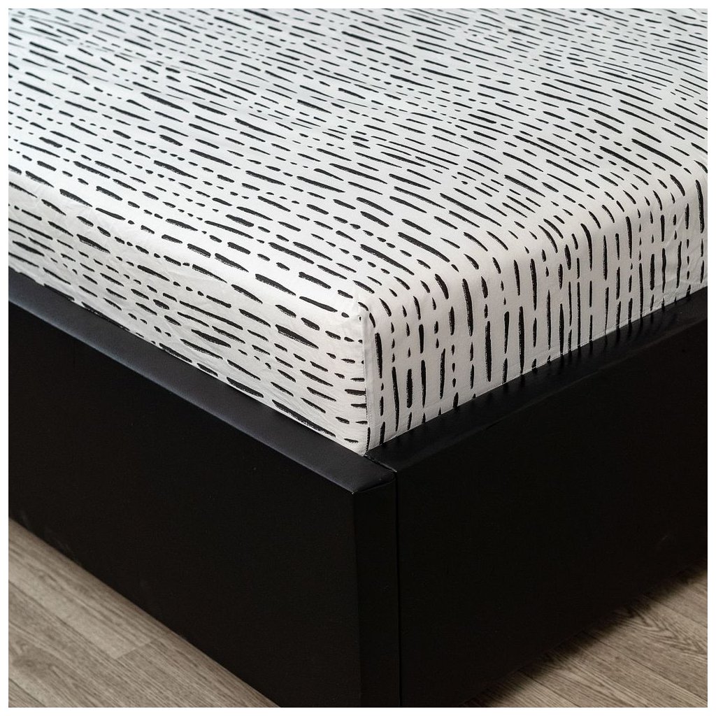 Vedle jednobarevných prostěradel nabízíme i vzorovaná napínací prostěradla s gumou všitou v tunýlku. Prostěradla vyrábíme vlastní výrobou a jsou vyrobené z pevné bavlněné tkaniny. Bavlněné prostěradlo s hravým potiskem černých tahů štětcem je ideální pro moderní ložnici.
