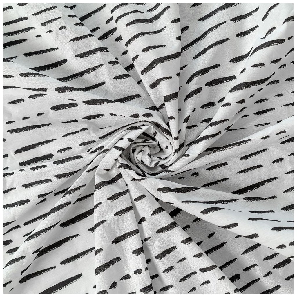 Vedle jednobarevných prostěradel nabízíme i vzorovaná napínací prostěradla s gumou všitou v tunýlku. Prostěradla vyrábíme vlastní výrobou a jsou vyrobené z pevné bavlněné tkaniny. Bavlněné prostěradlo s hravým potiskem černých tahů štětcem je ideální pro moderní ložnici.