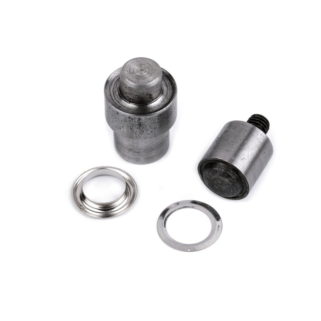 Kovový piston je určený k nýtování průchodek a skládá ze dvou částí. Používá se tak, že větší část pistonu umístíme v dolní části lisu a vložíme látku s průchodkou Ø14 mm. Druhou část zašroubujeme do horní části lisu.